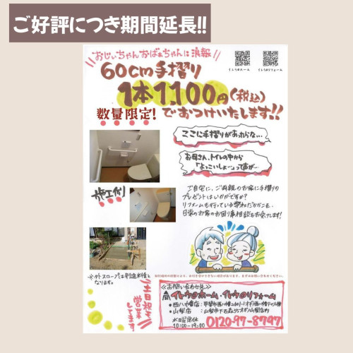 こんにちは😊イトウ・アット・ホームです🎉🎉🎉数量限定でお取り扱いをしていた手すり工事ですが、大好評につき❤️期間延長が決定しました👏👏👏身体を支える手すりがあ...