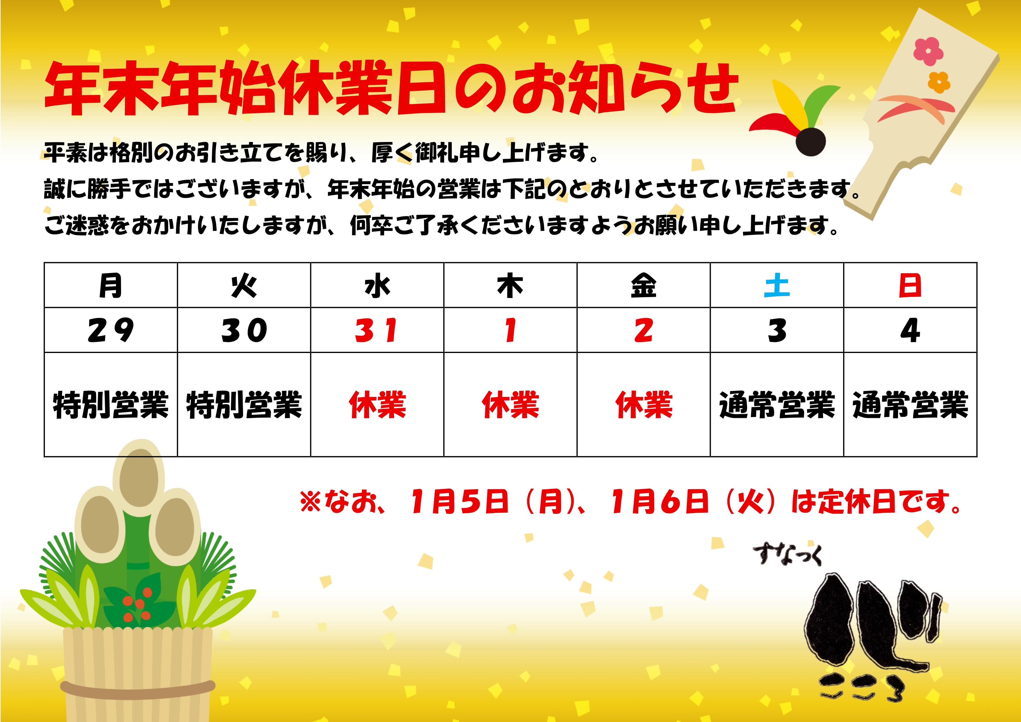 [すなっく心] ✨️年末年始休業日のお知らせ✨️