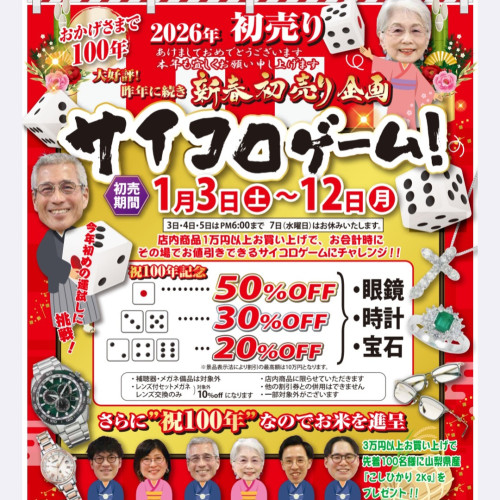 2025年は1/3から営業開始します!14日まで初売りを開催します。一年で一番最初のお買い物を一番お得にできるチャンスですので、ぜひご来店くださいませ!