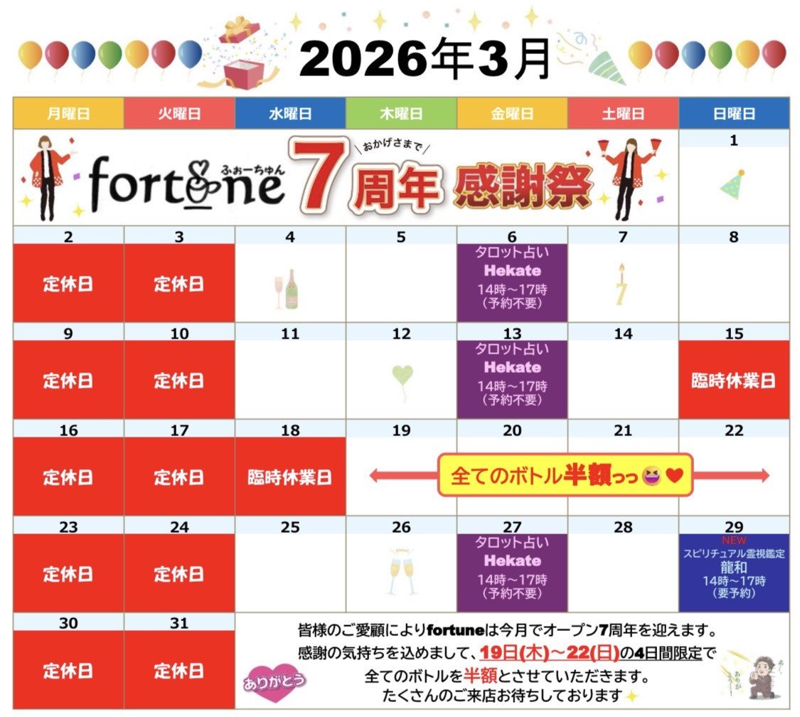 珈琲とお酒のお店fortune(ふぉーちゅん)です。いつもありがとうございます❣️今月でfortuneはオープン7周年を迎えることが出来ました。ひとえに皆様のおかげです。本当...