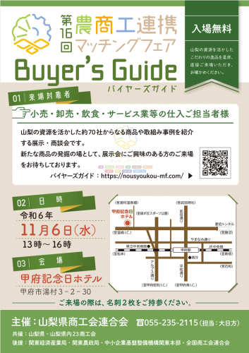 [早川町商工会] 【商談会情報】11/6(水)開催|第16回農商工連携マッチングフェア来場のご案内