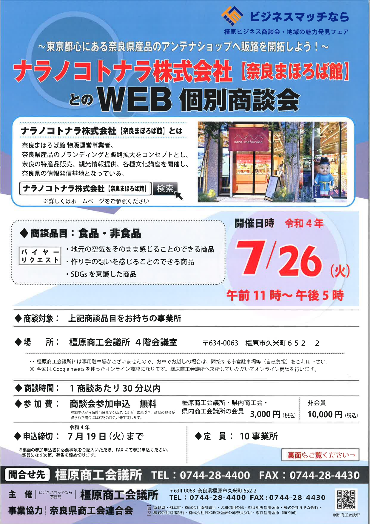 なお、商談会エントリーは無料で、商談の機会を得ていただいた場合は通常参加費として3,000円をいただいておりますが(商工会等会員価格)、王寺町商工会会員事業者さま限定で完全無料とさせていただきますので、是非ご検討ください!!