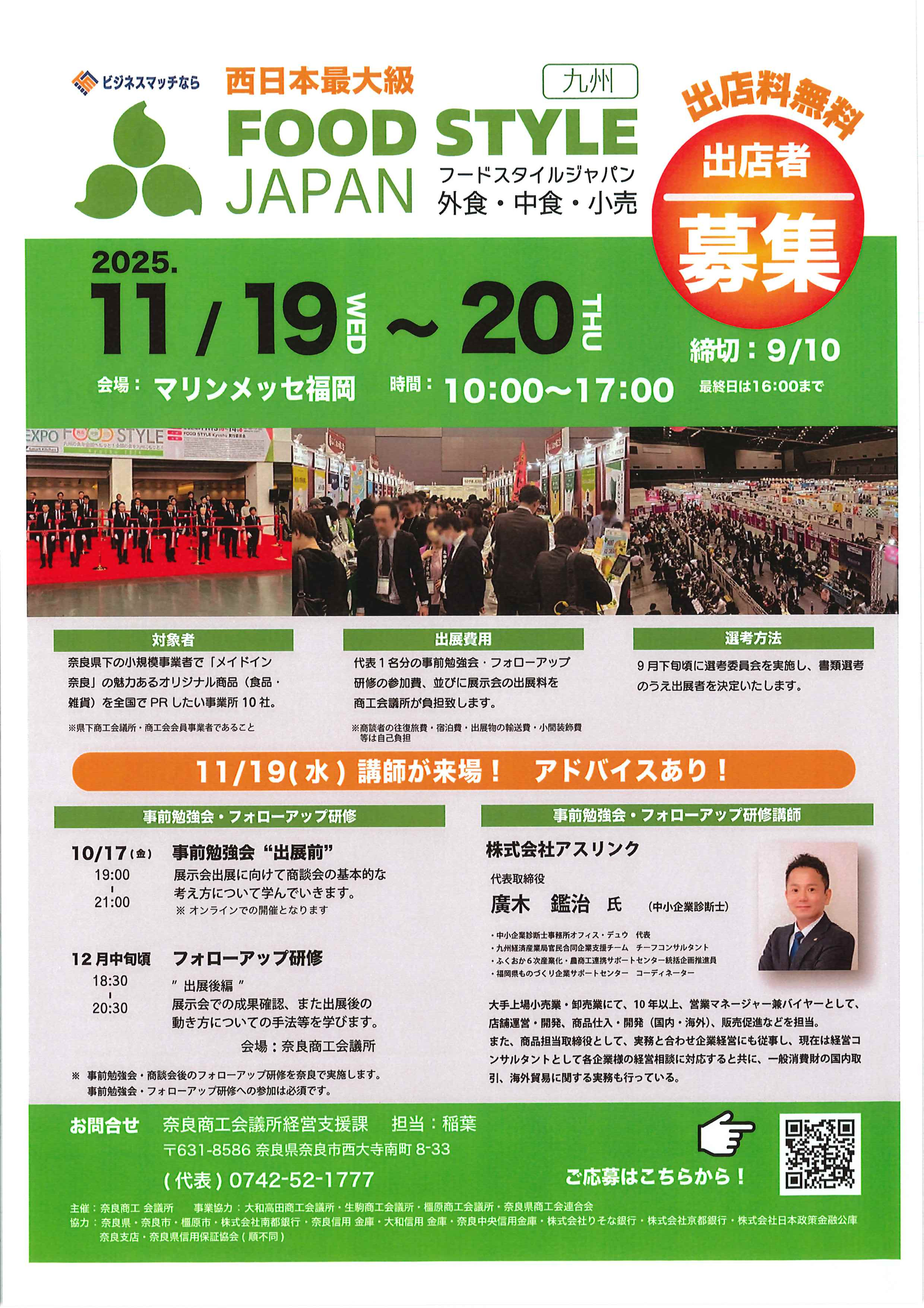 奈良商工会議所主催による西日本最大級のFOOD STYLE JAPAN(九州/マリンメッセ福岡)についてお知らせします。