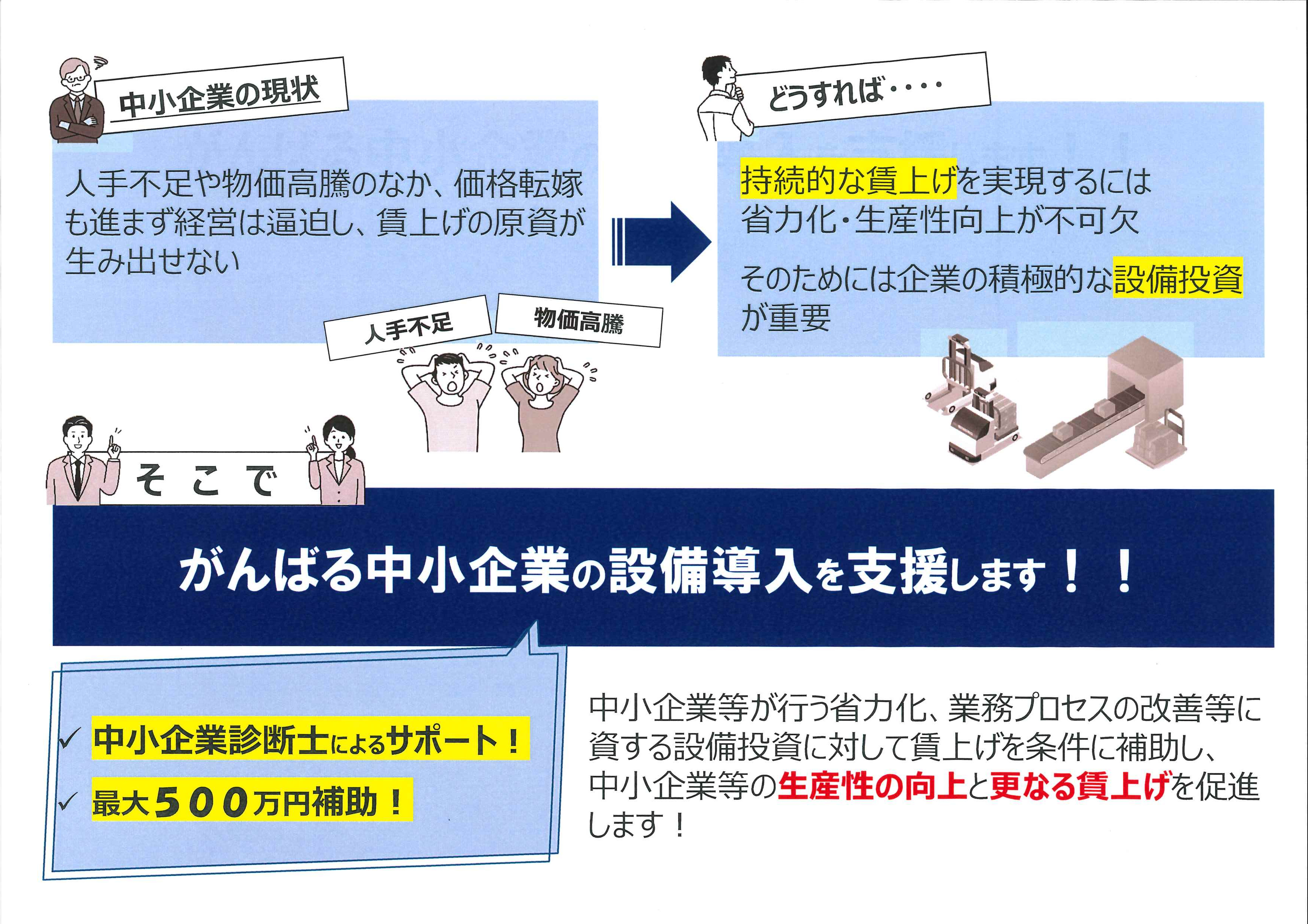 本補助金の活用には、設備導入前に県が派遣する中小企業診断士の支援を受けることが必須となっております。