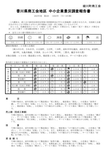 [綾川町商工会(会員かわら版)] 香川県商工会地区 中小企業景況調査報告書(2025年4月~6月期)