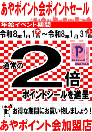 いつもあやポイント会加盟店をご利用いただき、ありがとうごさいます。今年もこの時期がやってまいりました!あやポイント会 大抽選会 を開催いたします。今年の開催は...