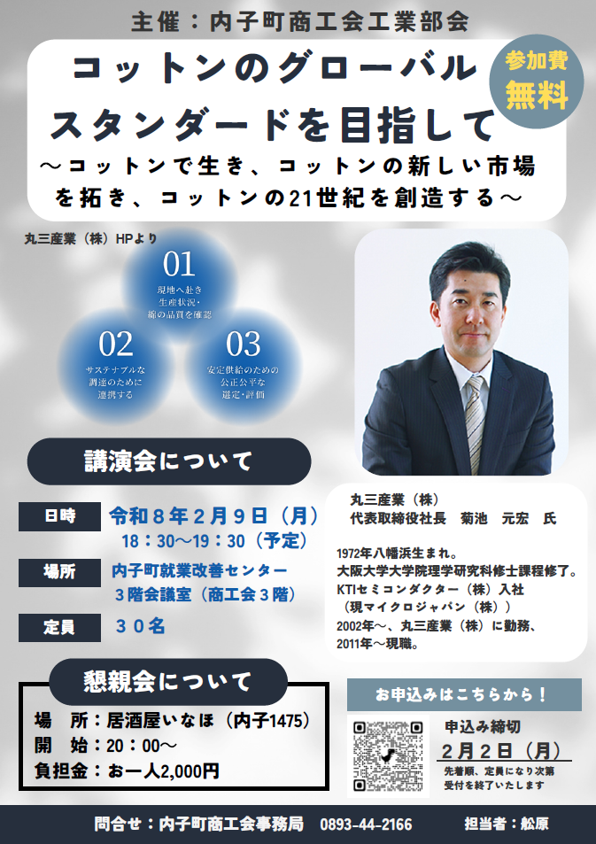 【講演会ご案内】2/9(月) 工業部会開催「コットンのグロースタンダードを目指して」