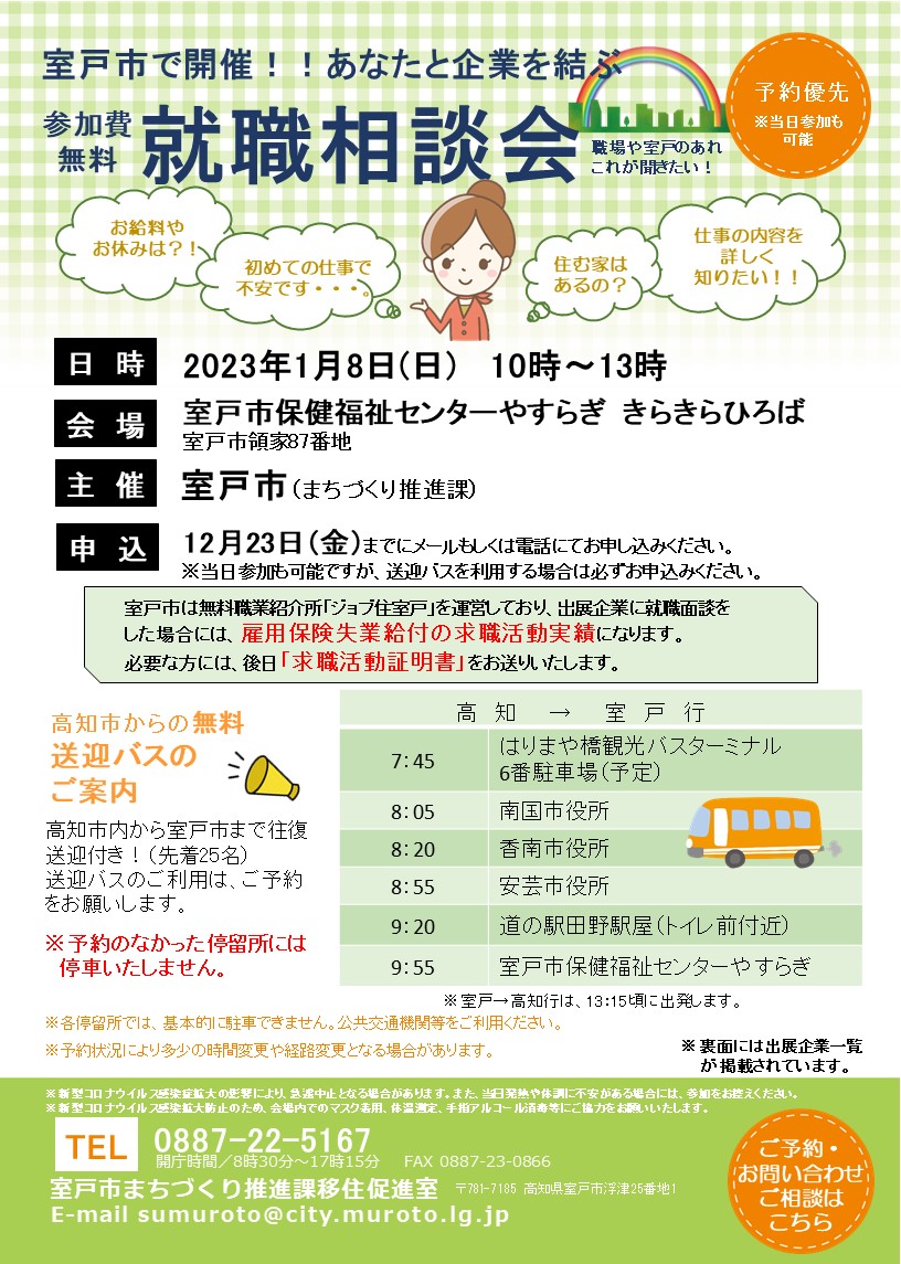 令和5年1月8日(日)に、室戸市就職相談会を開催します!