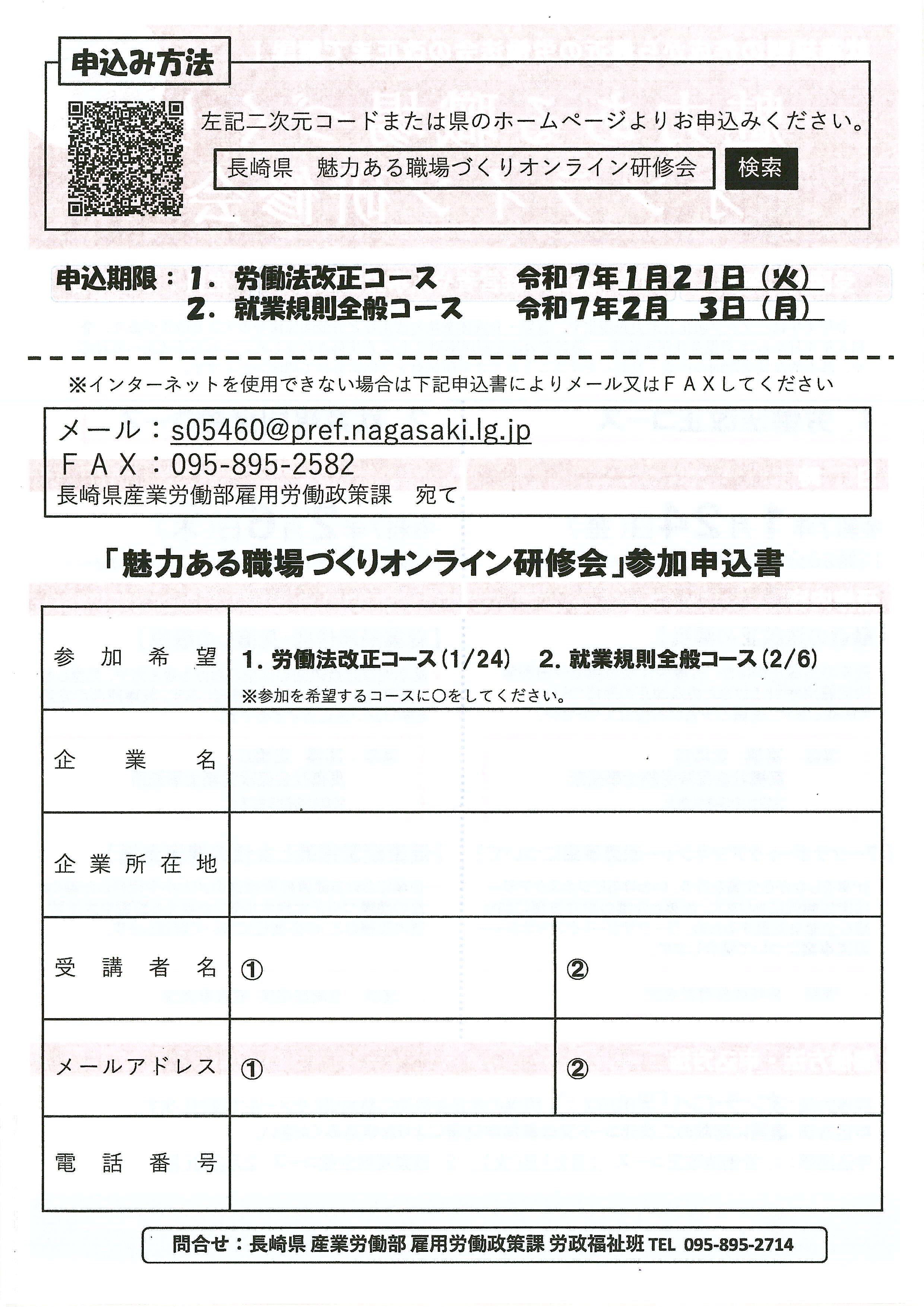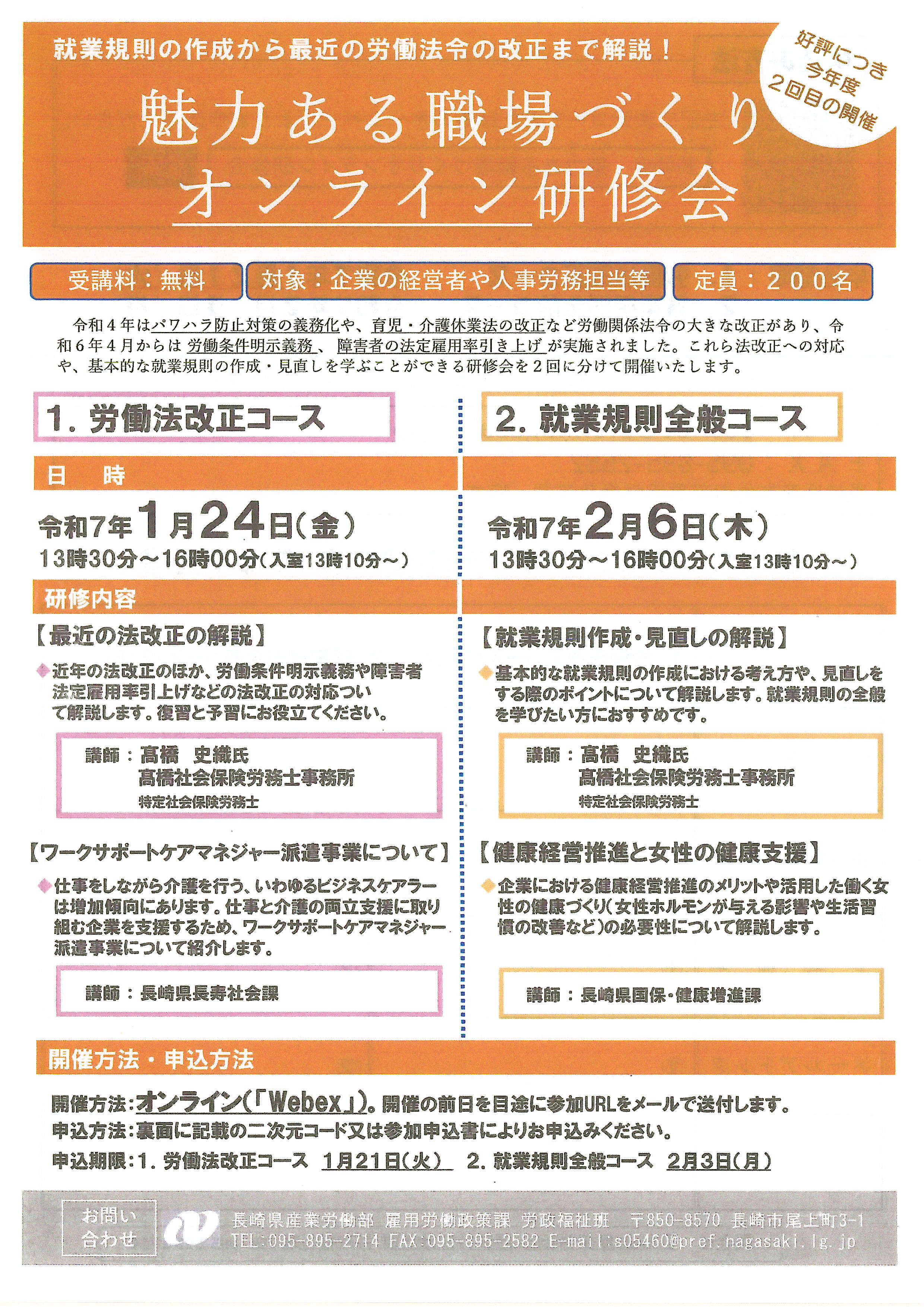 詳細は魅力ある職場づくりオンライン研修会の開催 | 長崎県をご覧ください。