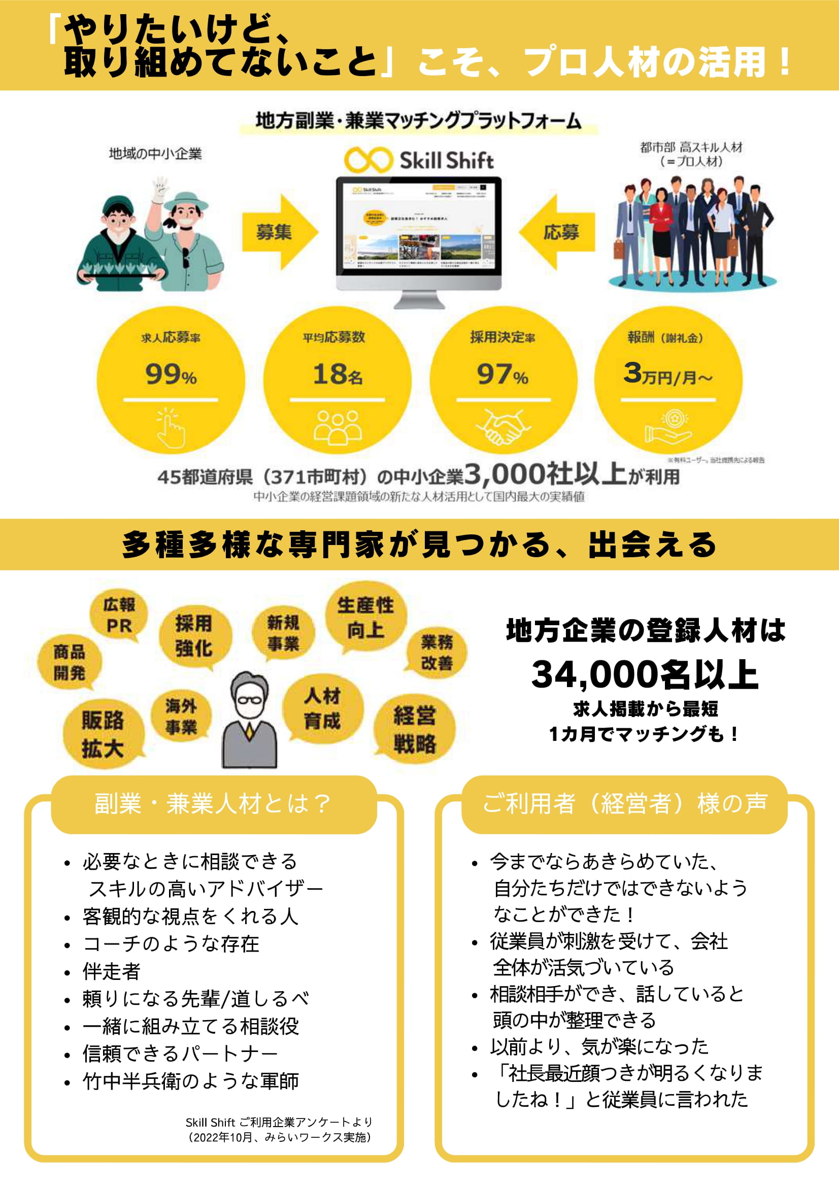 経営に係る課題、悩みなどを解決してくれる「プロ人材」の活用について理解を深めることができます。経営の課題を解決したいと考えている方は是非お申し込み下さい。