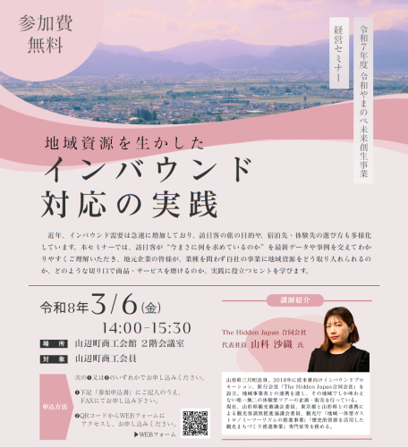 [山辺町商工会] 【セミナー情報】インバウンドセミナー開催のお知らせ