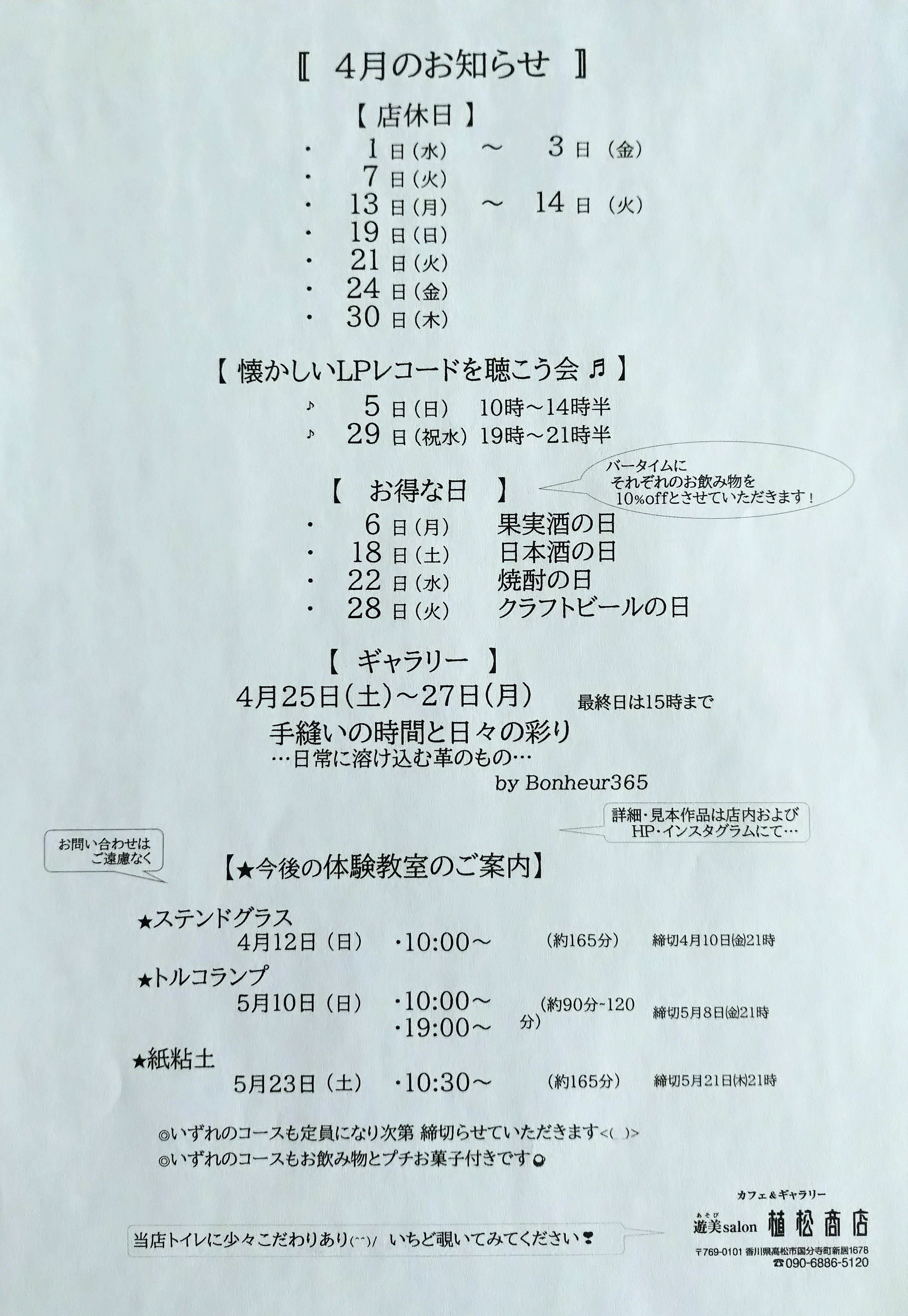 [カフェ&ギャラリー 遊美salon 植松商店] 4月の予定です🌿