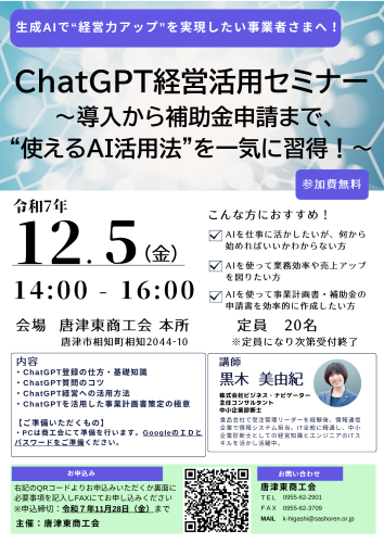 [唐津東商工会] 「ChatGPT経営活用セミナー」を開催します