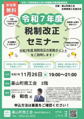 [多久市商工会] 令和7年度税制改正セミナーのご案内