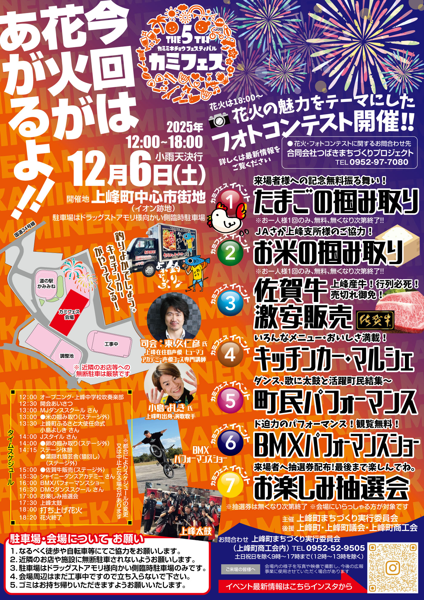 [上峰町商工会] 第5回カミフェスのタイムスケジュール一部変更について(お知らせ)