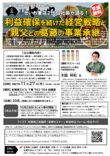 [武雄市商工会] 【ご案内】 佐賀県商工会議所主催 承継セミナーについて