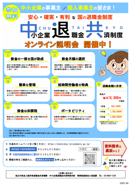 [武雄市商工会] 【ご案内】 中小企業退職金共済制度に関するオンライン説明会について