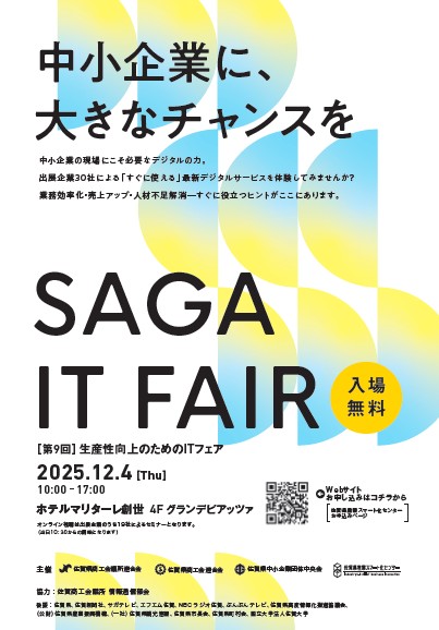 今年で9回目の開催となる、生産性向上のためのITフェア「SAGA ITフェア」が今年も開催されます。今回は、出展企業のうち19社によるセミナーが開催され、会場参加だけで...