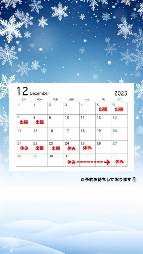 こんにちは☀️東彼杵整骨院です✨12月の整骨院カレンダーです🗓️・8日、24日は休診となります。・9日は、18:00までとなります。・12日は、午前中のみとなります。・10日は...