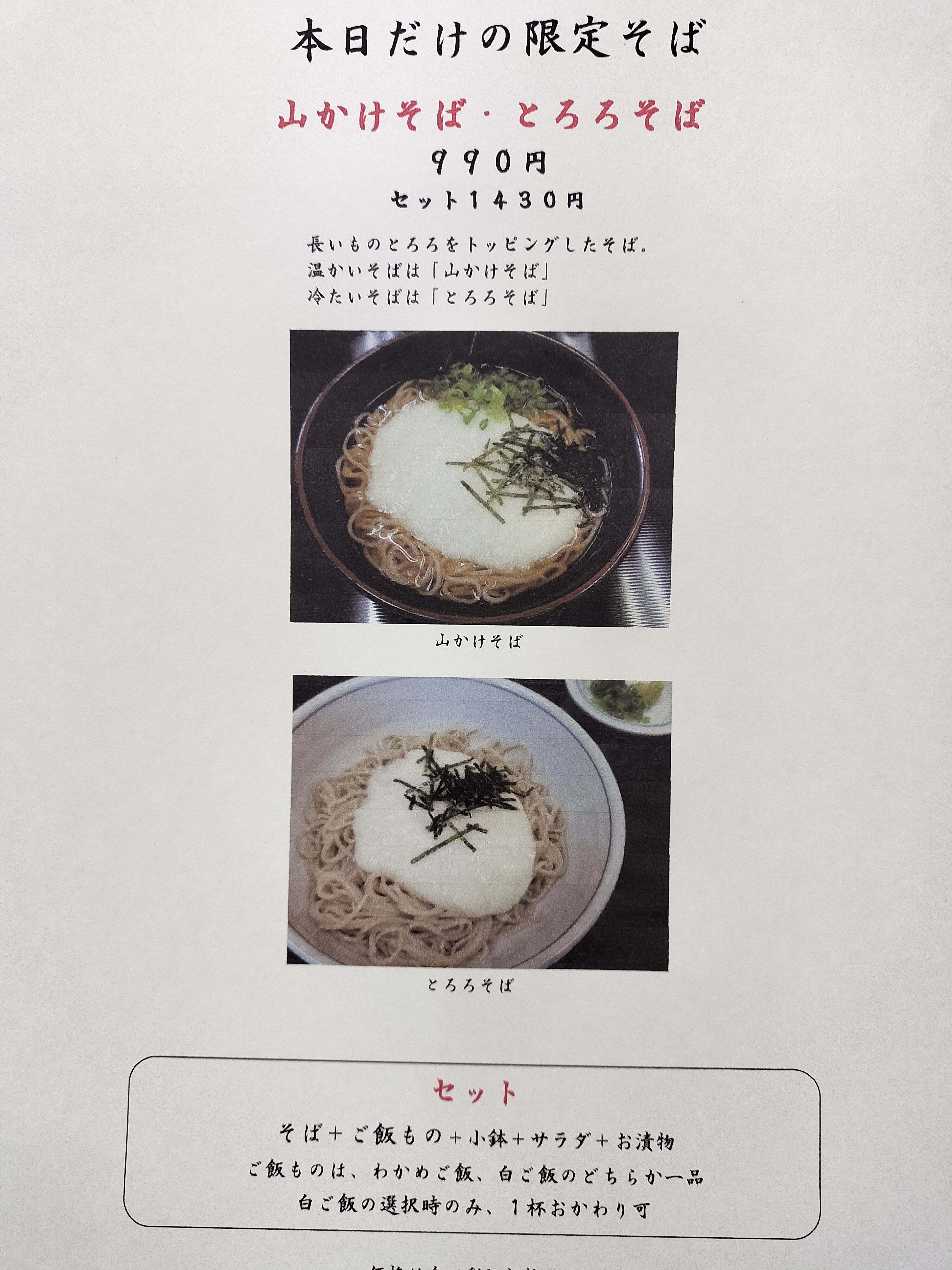 [いやしのそば処 愛菜館] 現在、臨時メニューで営業中