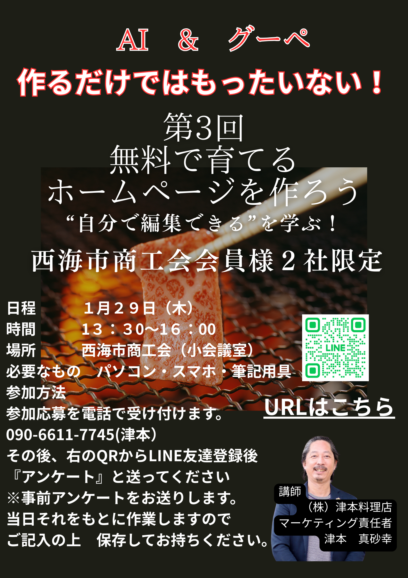 [株式会社 津本料理店 マーケティング事業部 / 株式会社セカンドペンギン] 第3回 無料で育てる ホームページを作ろう!(AI & グーぺ)