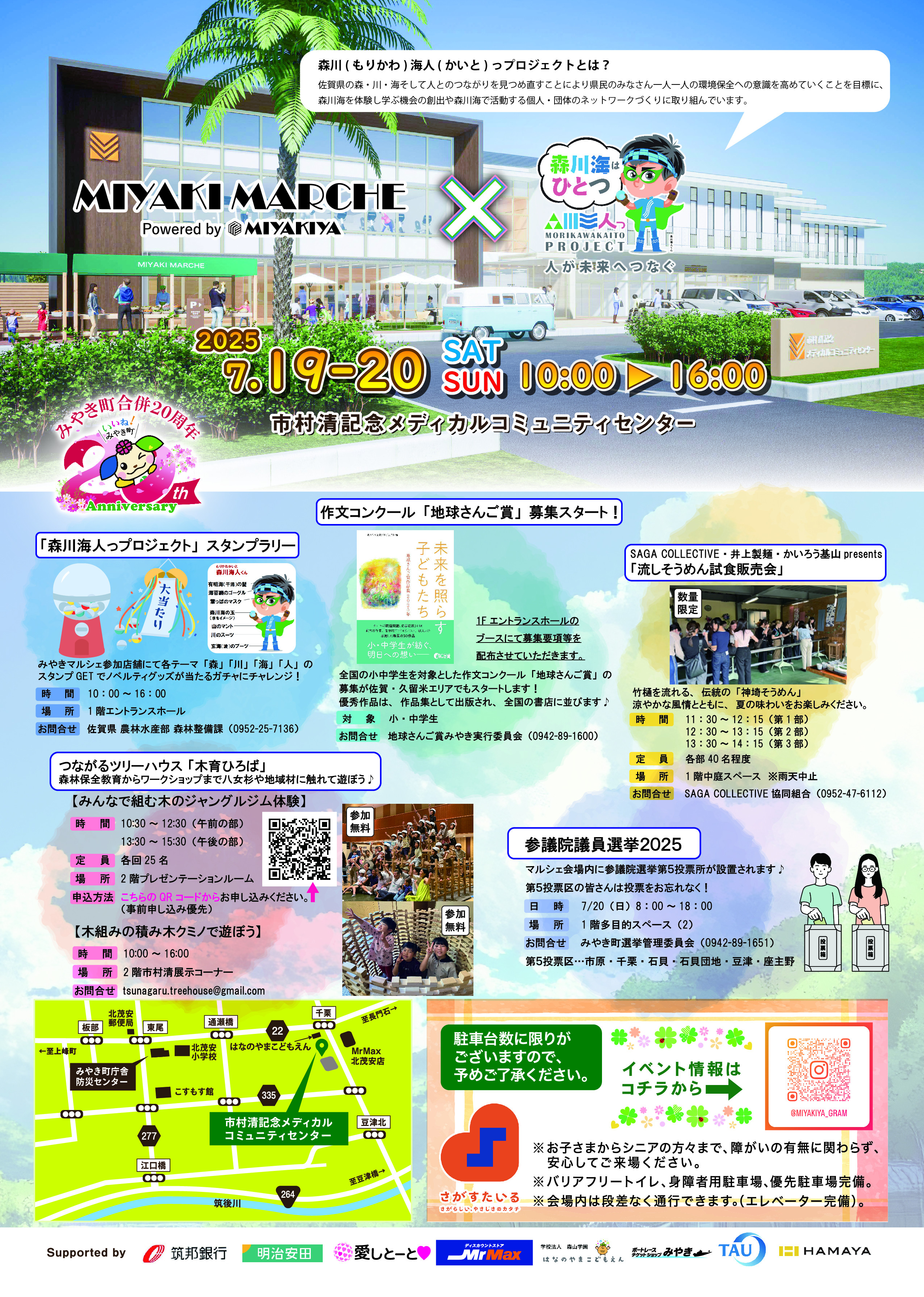 ✨7月のイベントのお知らせです✨🎋7月19−20日(土日)『みやきマルシェ』市村記念メディカルコミュニティセンターにて毎度お馴染みのマルシェ。今回は、スタンプ...
