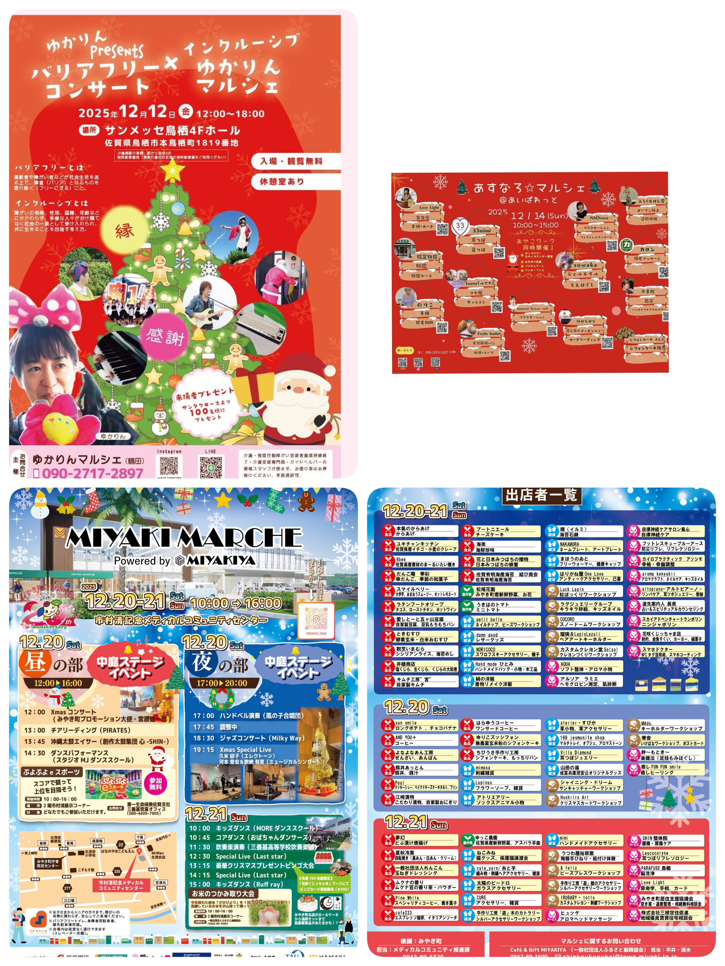 ✨今月のイベントのお知らせです✨🎄12月12日(金曜日)ゆかりんマルシェサンメッセ鳥栖4Fホールにて🎄12月14日(日曜日)あすなろマルシェ多久あいぱれっとにて🎄12月2...