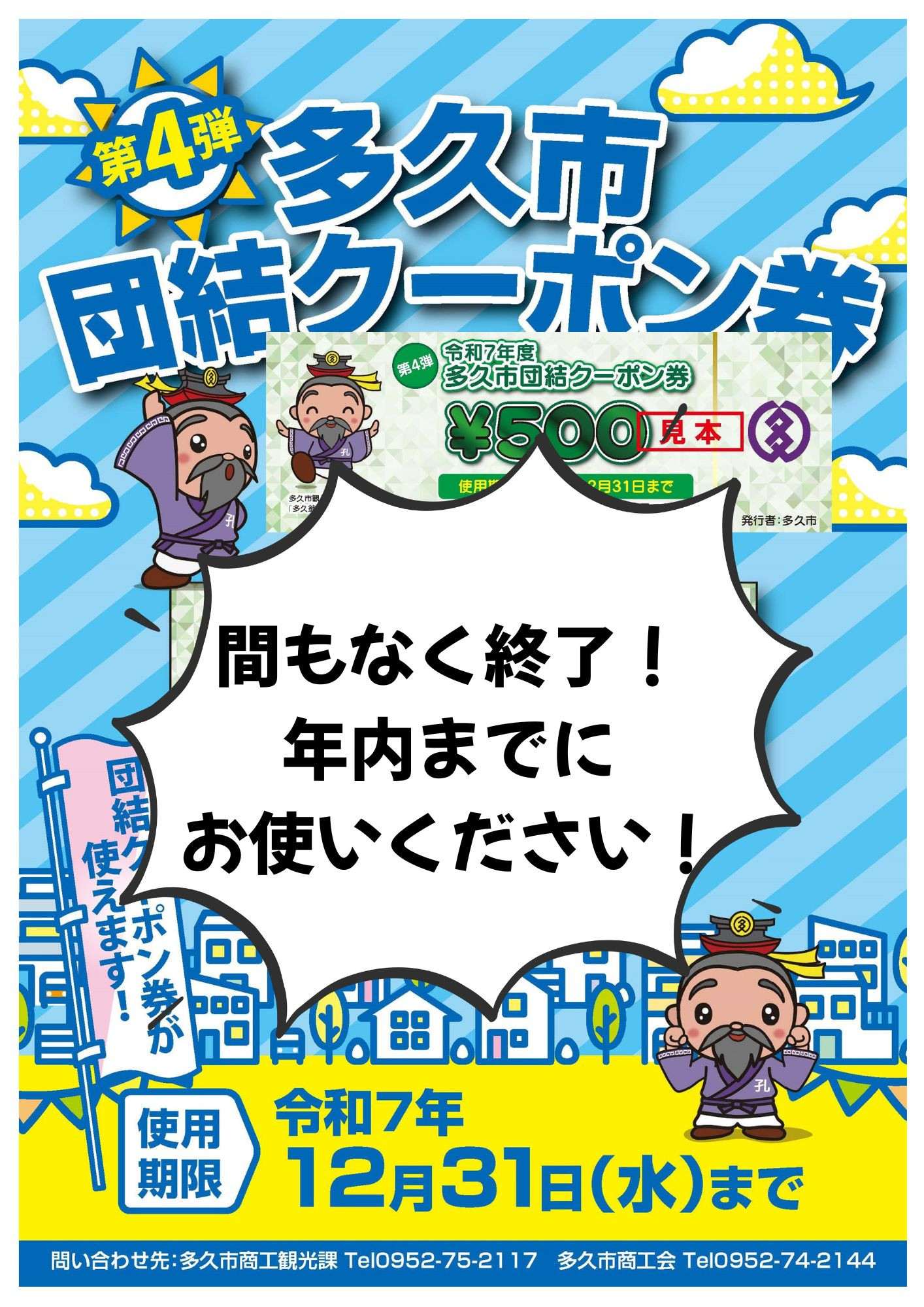 第4弾 多久市団結クーポン券の使用期限は、令和7年12月31日までです!