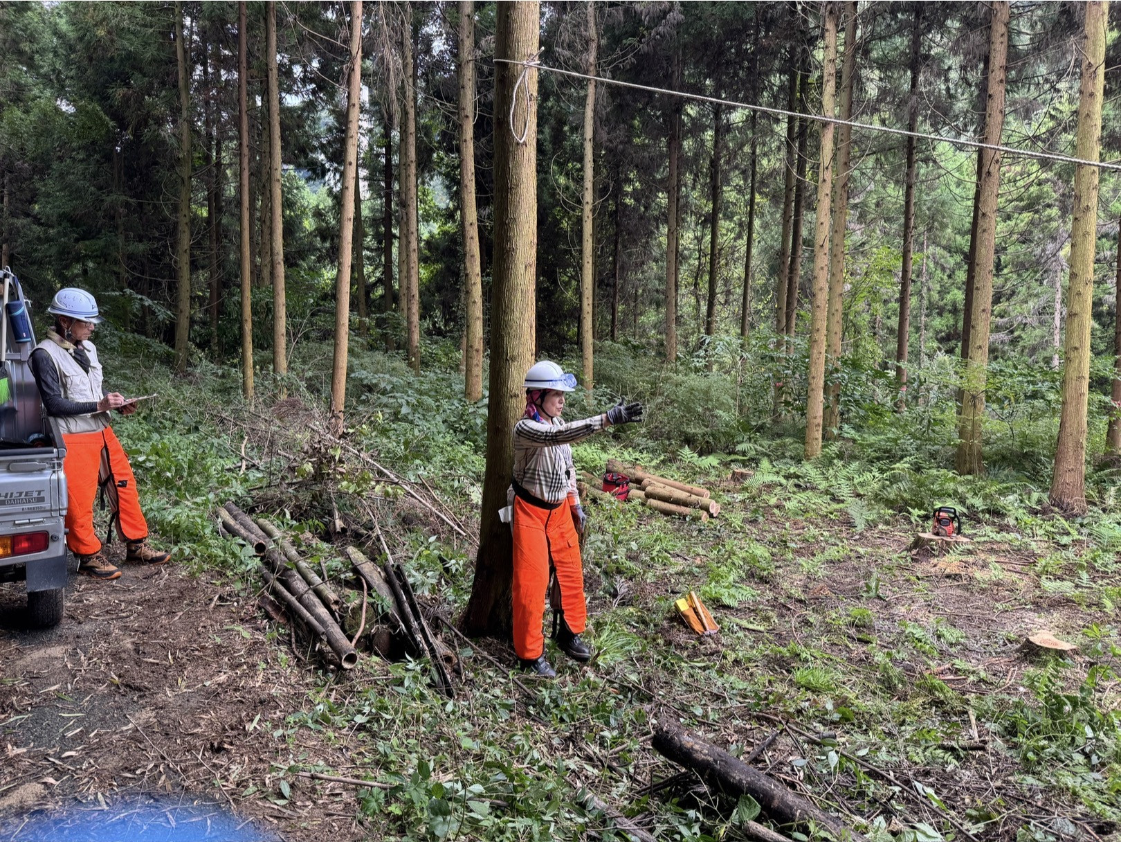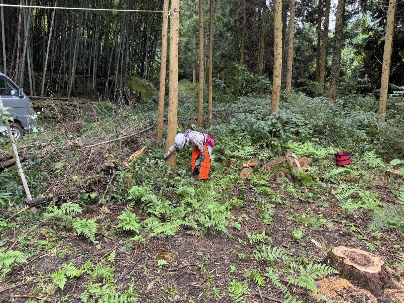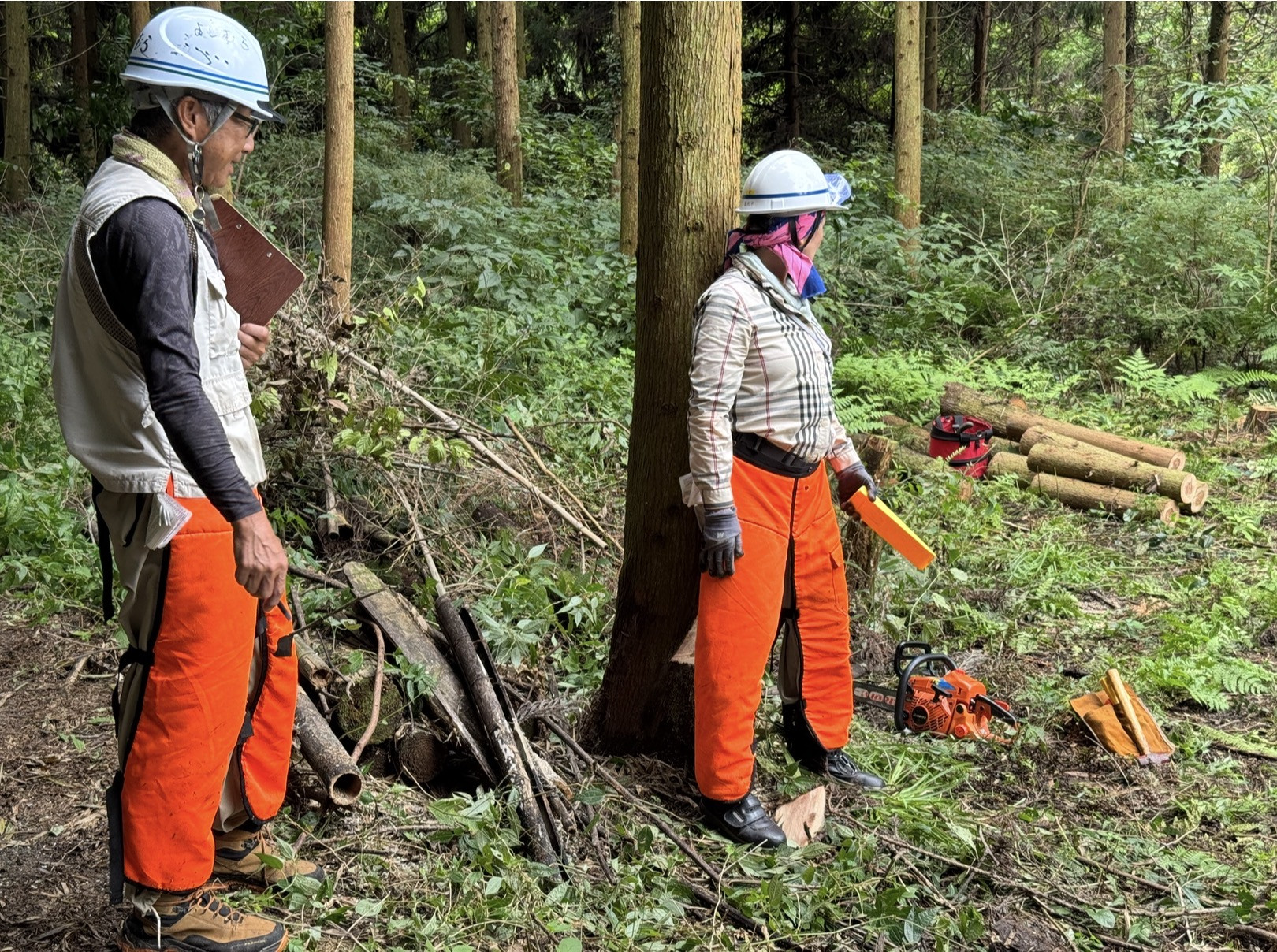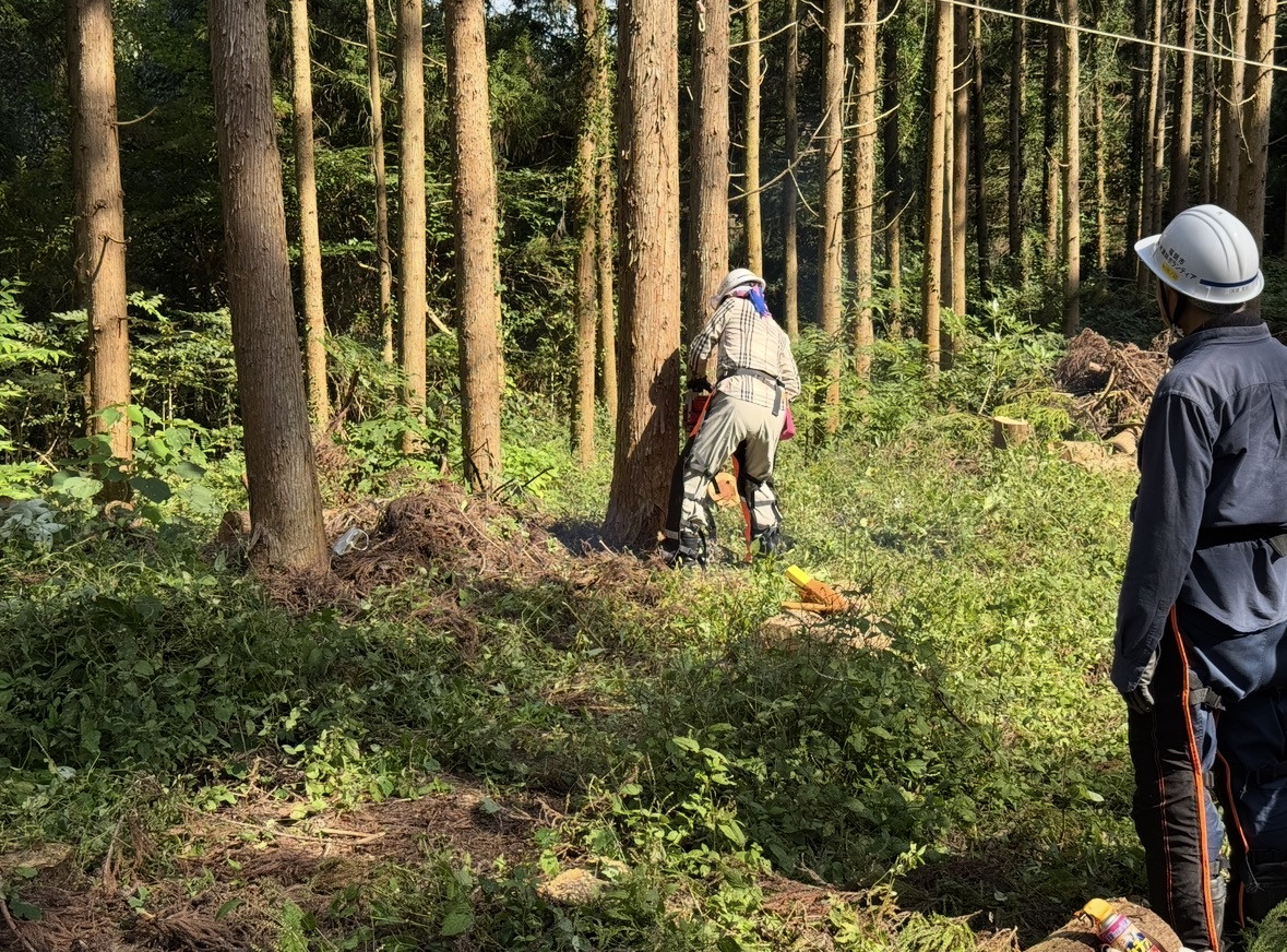 朝の茶話の森は・・・少し秋らしく・・・少し涼しくなりました・・・第二研修の森での伐倒作業・・・今日はリーダーが・・・手順書に基づいて・・・一人ひとりの手順を確認・・・選木から終了の笛まで・・・安全確認を第一に・・・それぞれのメンバーが課題や改善ポイントを確認して・・・次回に生かしましょう