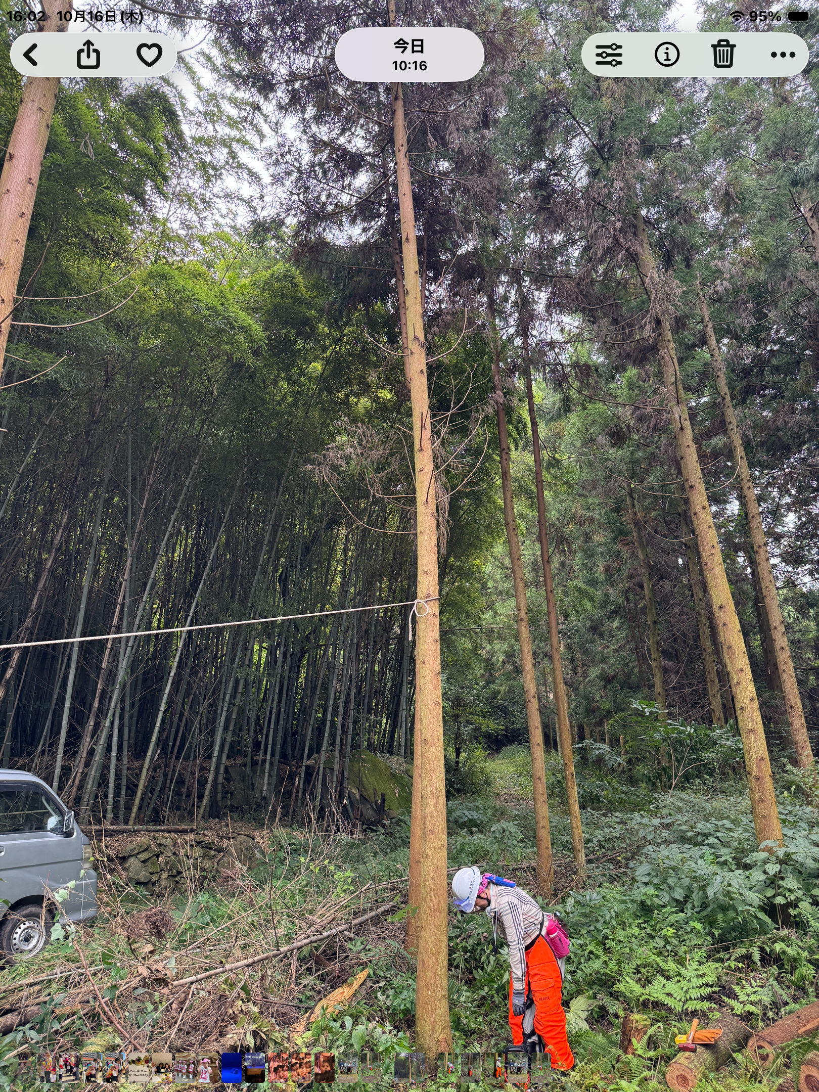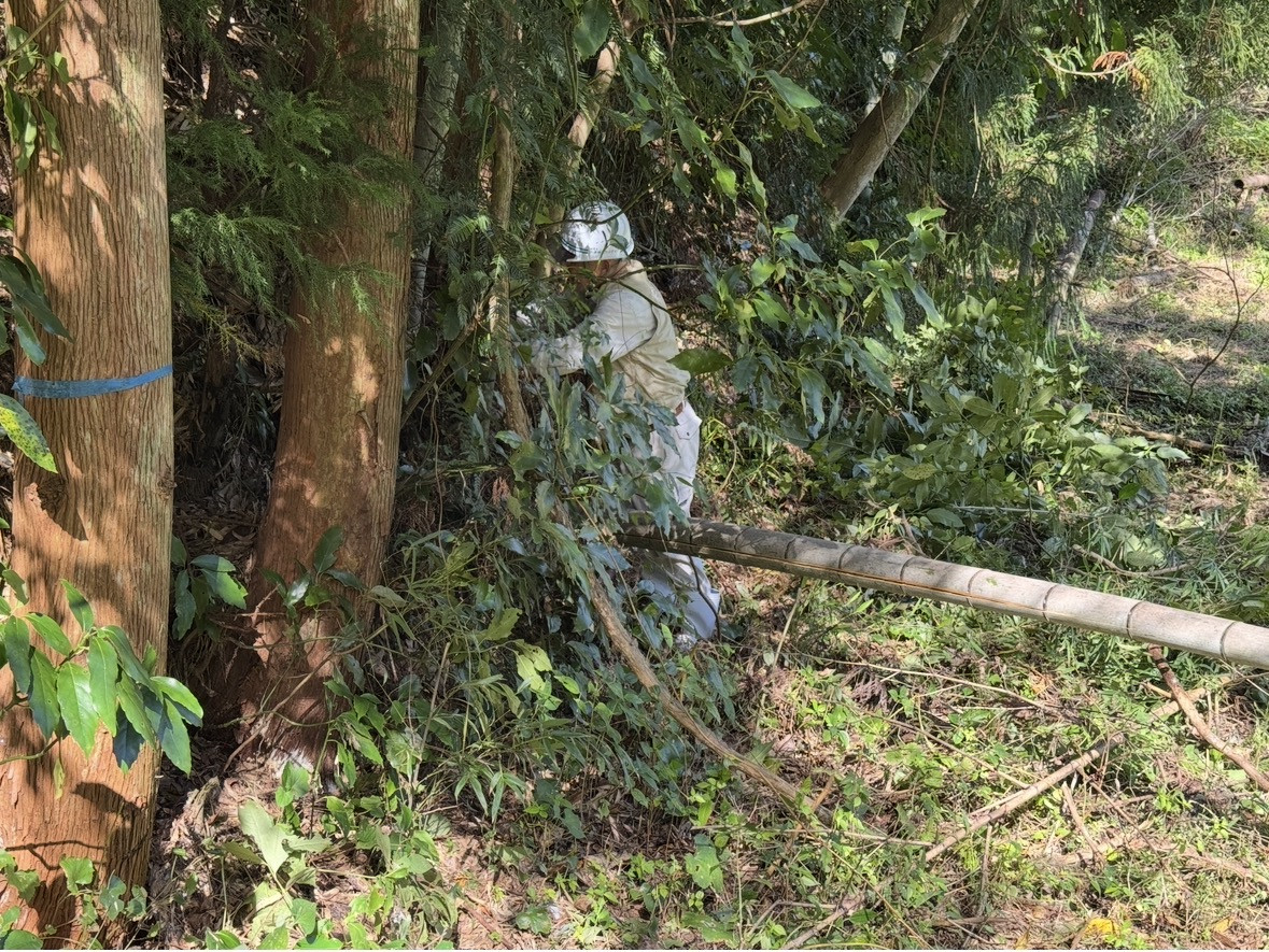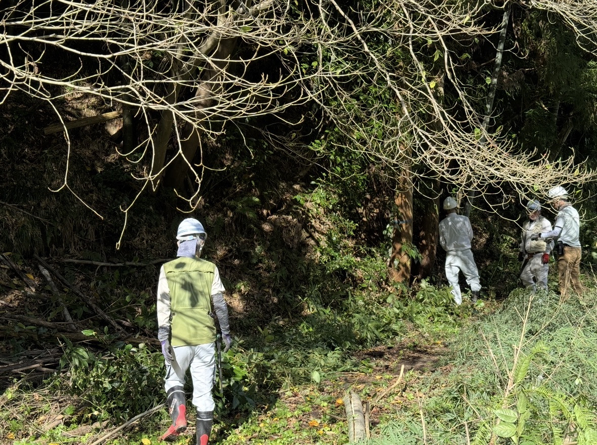 久しぶりの八丁望の森・・・国道から見ても・・・倒れた竹や雑木・・・急な斜面に苦労しながら・・・枯れ竹を引っ張り出す・・・なかなかしぶとい・・・力を合わせて・・・せーの!せーの!・・・腰が痛い・・・腕も痛い・・・終わった頃には奇麗に・・・皆さん疲れねーと言いながら岐路に
