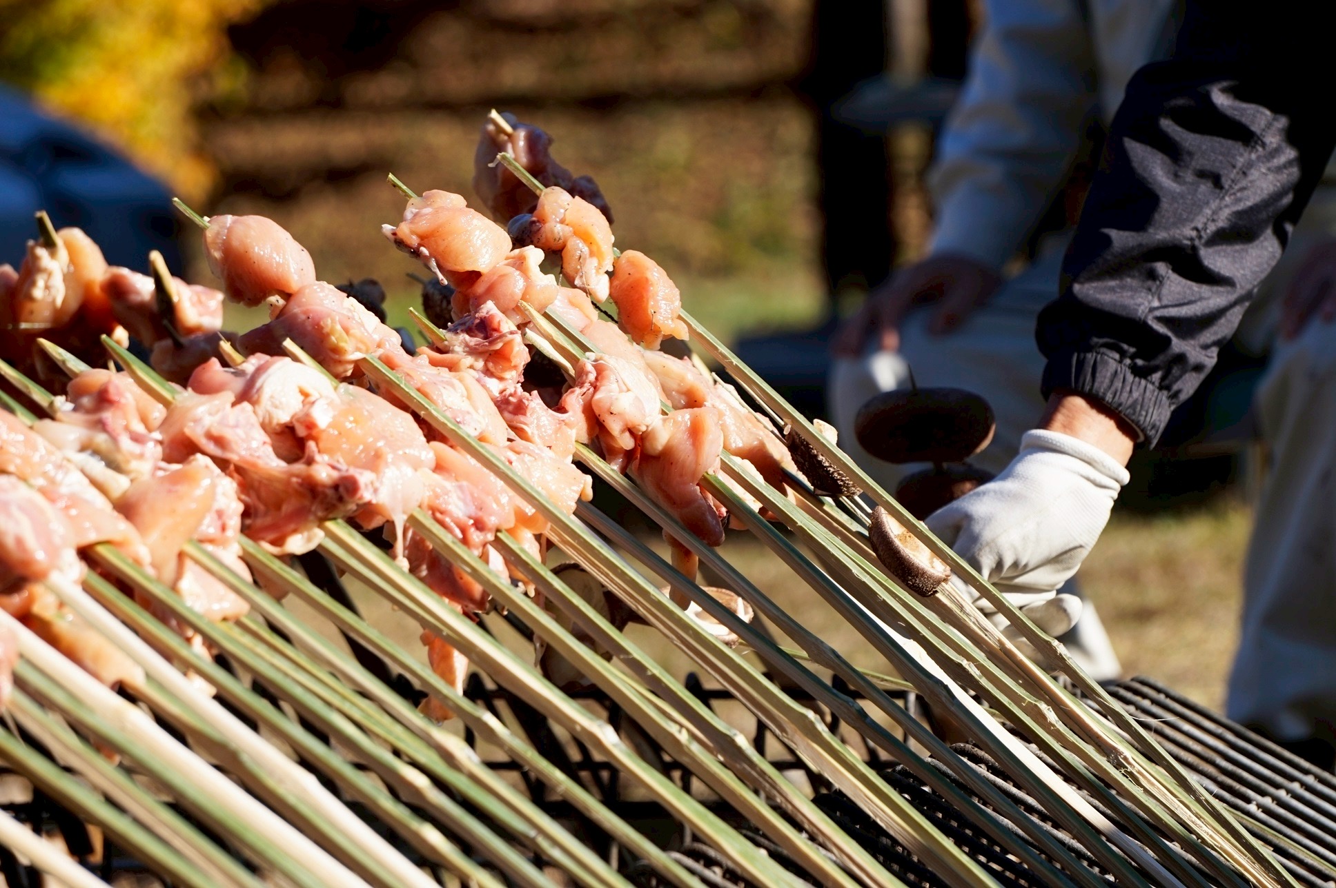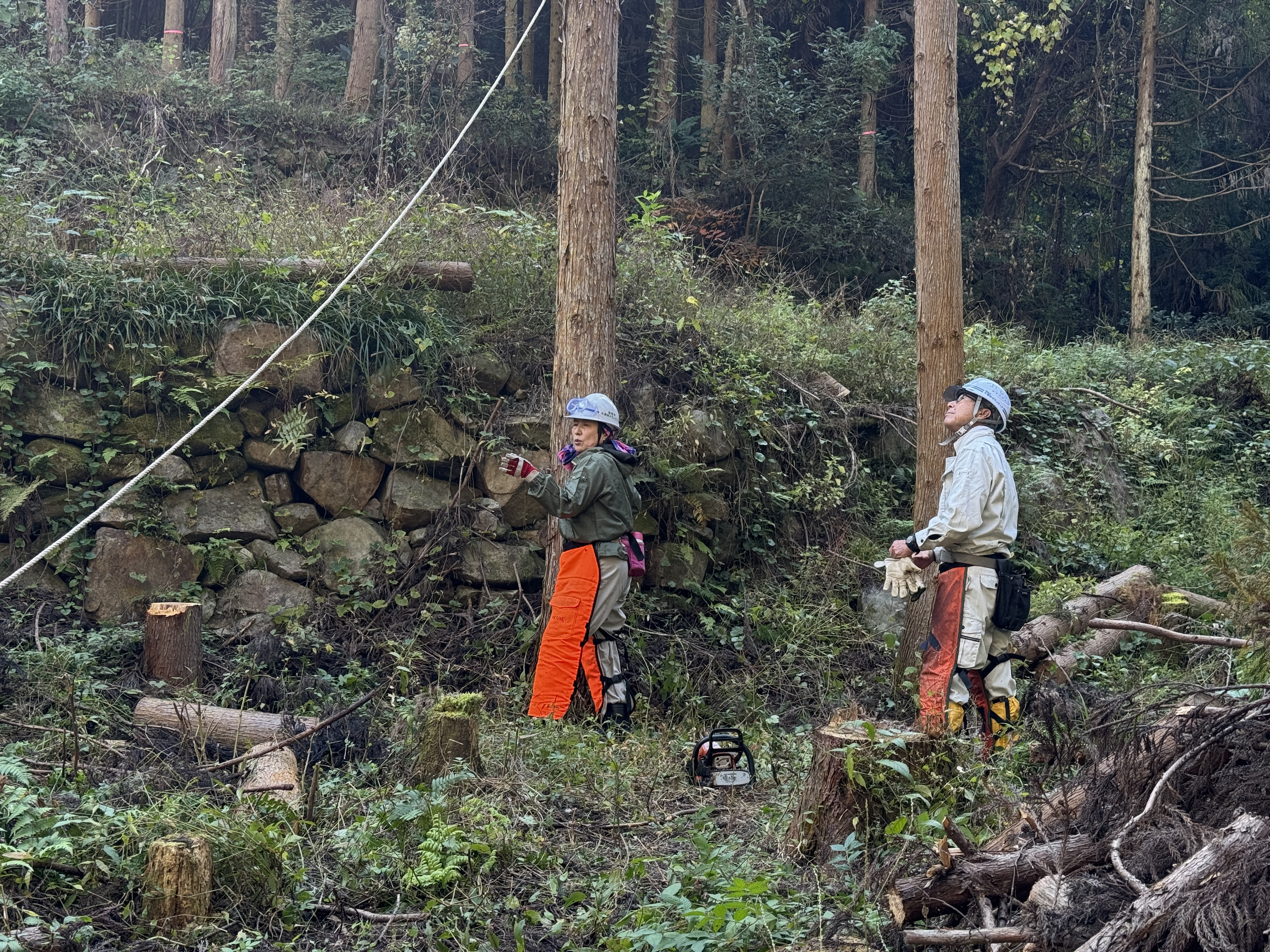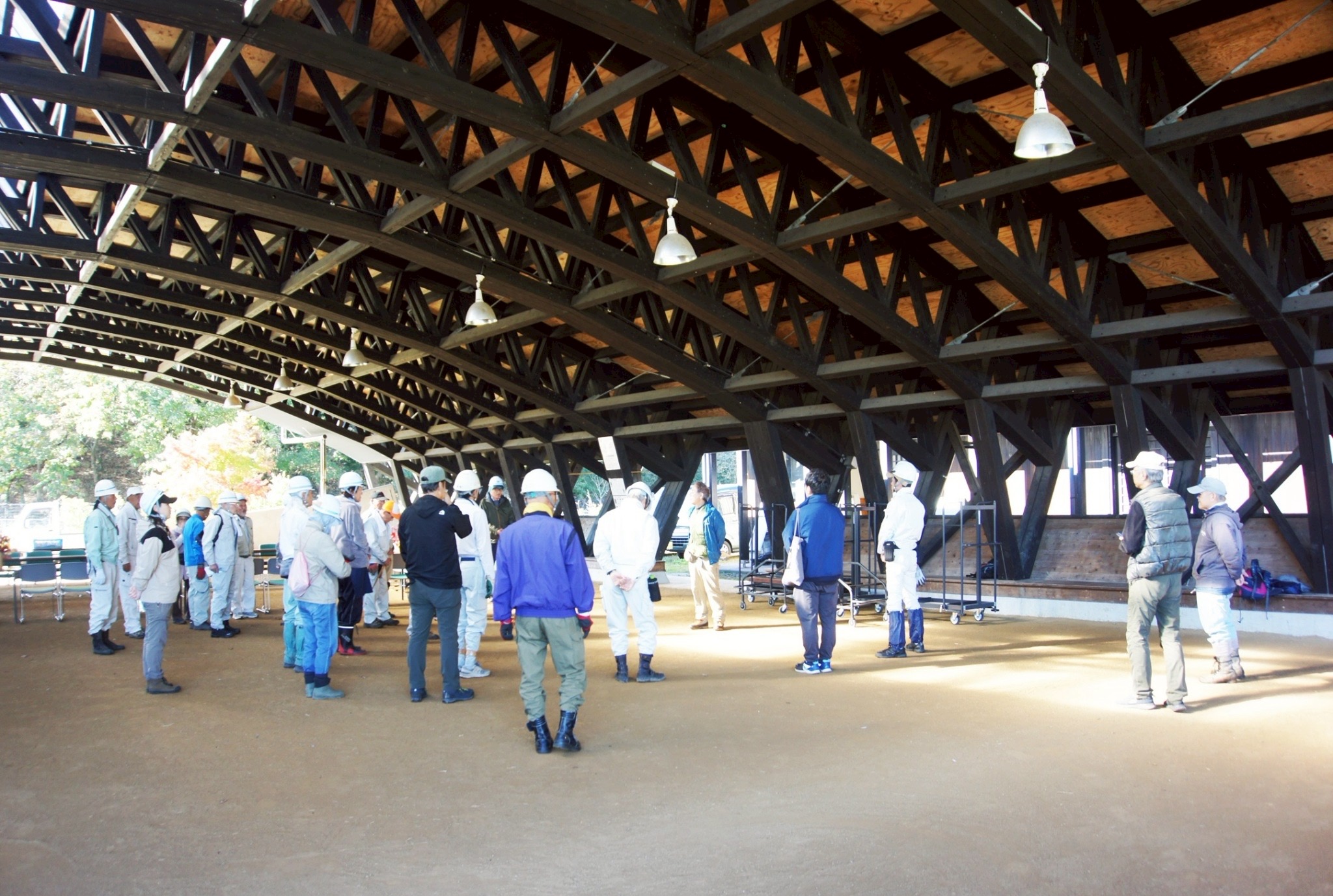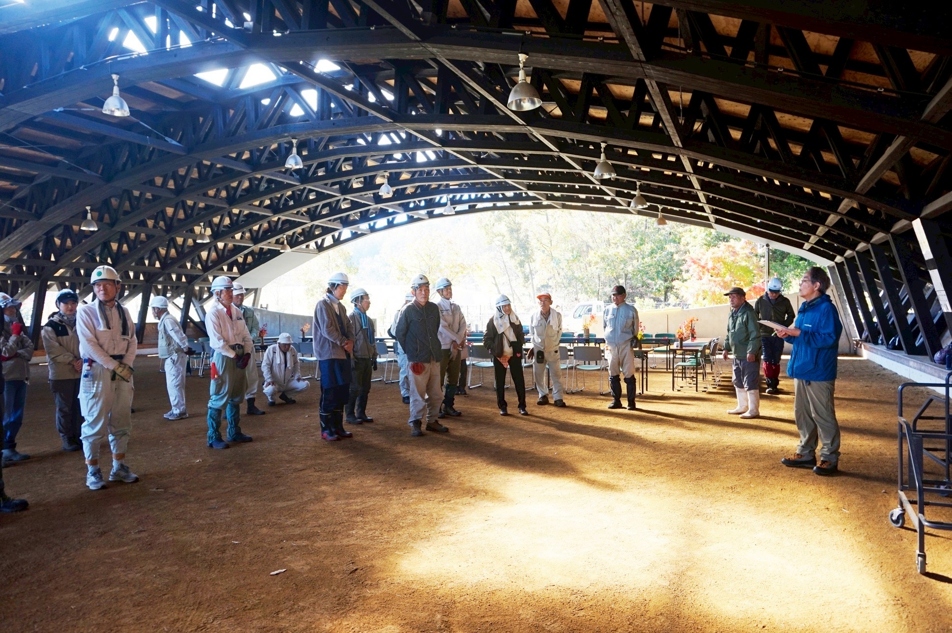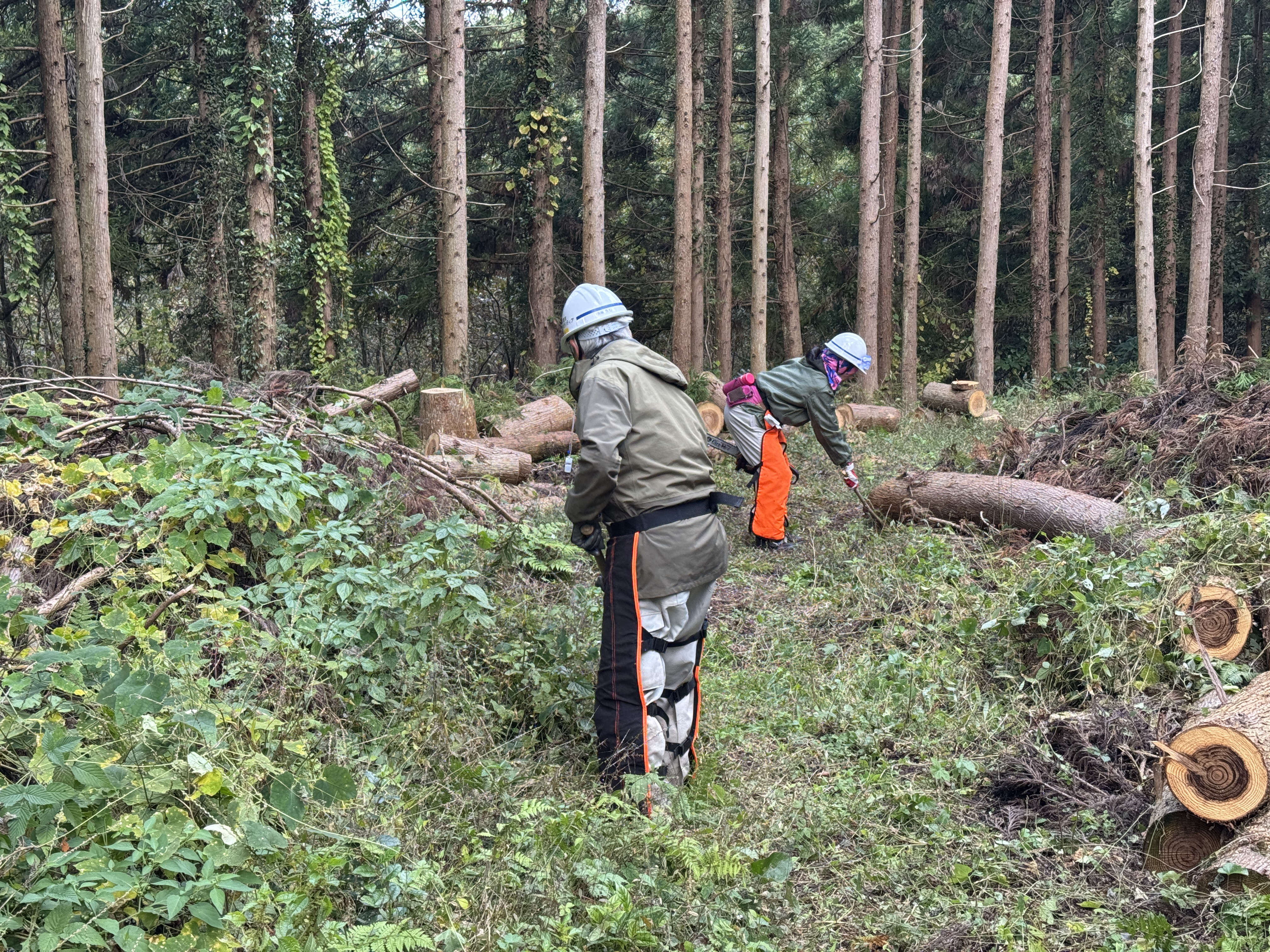 秋晴れ?のもと・・・水道局に集まったメンバー・・・バスに乗り向かうは田来原美しい森公園・・・老松生産森林組合長のご挨拶・・・体操に記念撮影と・・・徒歩で向かうは・・・うっそうと茂った急な坂・・・足元に注意しながら・・・手にノコを持って入り込む・・・雑木やツルをノコで切り取る・・・約2時間で陽射しも差し込む・・・気持ちが良い・・・昼食交流会にはいつもの鳥串や豚汁・・・机の上には紅葉したもみじの枝・・・その後、来年度計画の大山農業体験交流会についてのお話・・・竹細工の講習も・・・帰りは木の花ガルテンで買い物・・・いいちこの紅葉祭でも楽しんで・・・無事に水道局に到着・・・お疲れ様でした