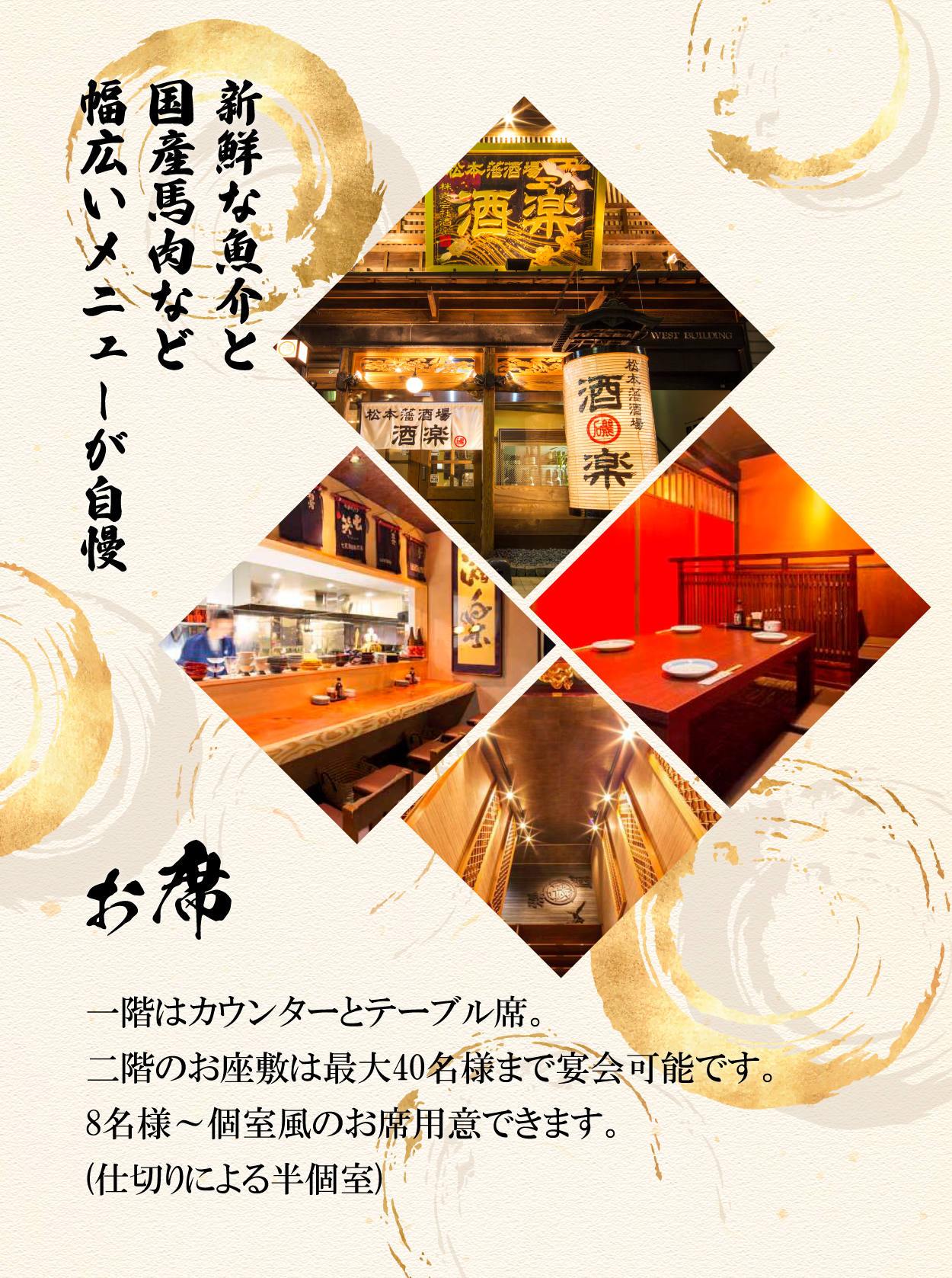 信州松本の食文化を“食べて知る”自慢の料理が堪能できる居酒屋です。新鮮な魚介と純国産にこだわった道産子馬による馬刺しや信州高原野菜を始めとしたソウルフードをご提供。信州名産馬刺しは、完全1頭買いのため、新鮮な馬肉が味わえます。一品一品への情熱とこだわりが違う居酒屋定番料理も多数。信州の地酒や地焼酎を豊富に取り揃えております