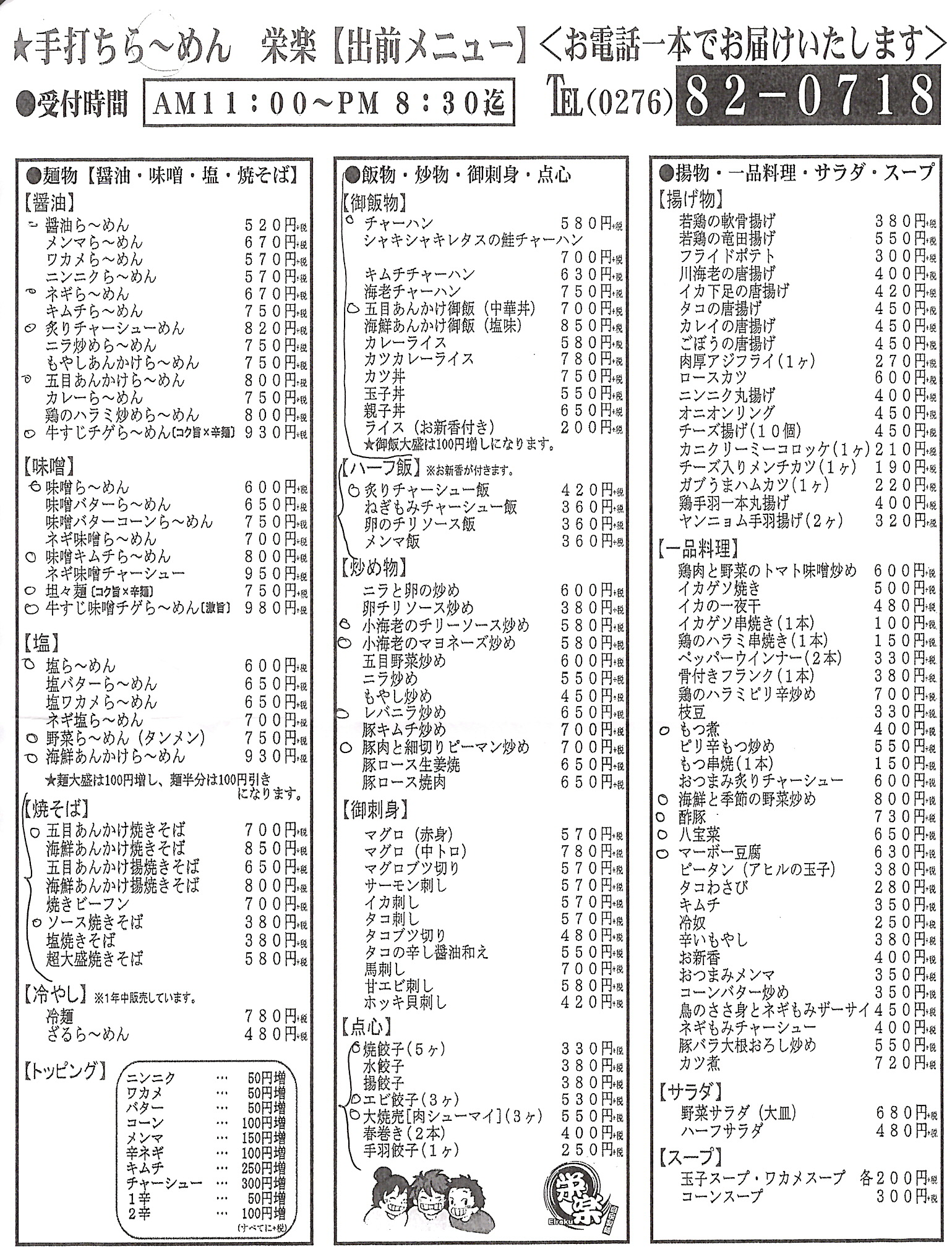 群馬県板倉町にある「手打ちらーめん栄楽」の公式ホームページです。 お電話一本で出前もいたします。