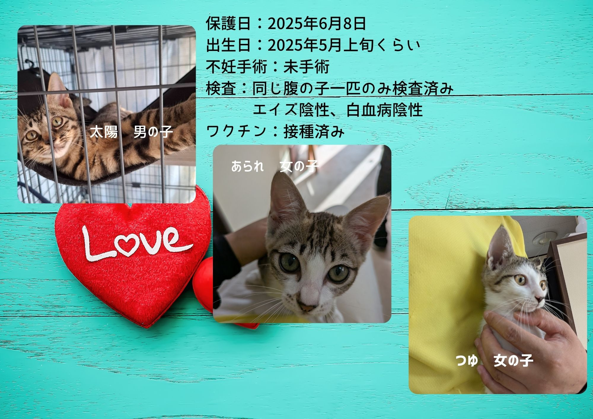この子達は、9月9日の不妊手術が終われば、餌やりさんのもとにもどり、野良猫になってしまします。