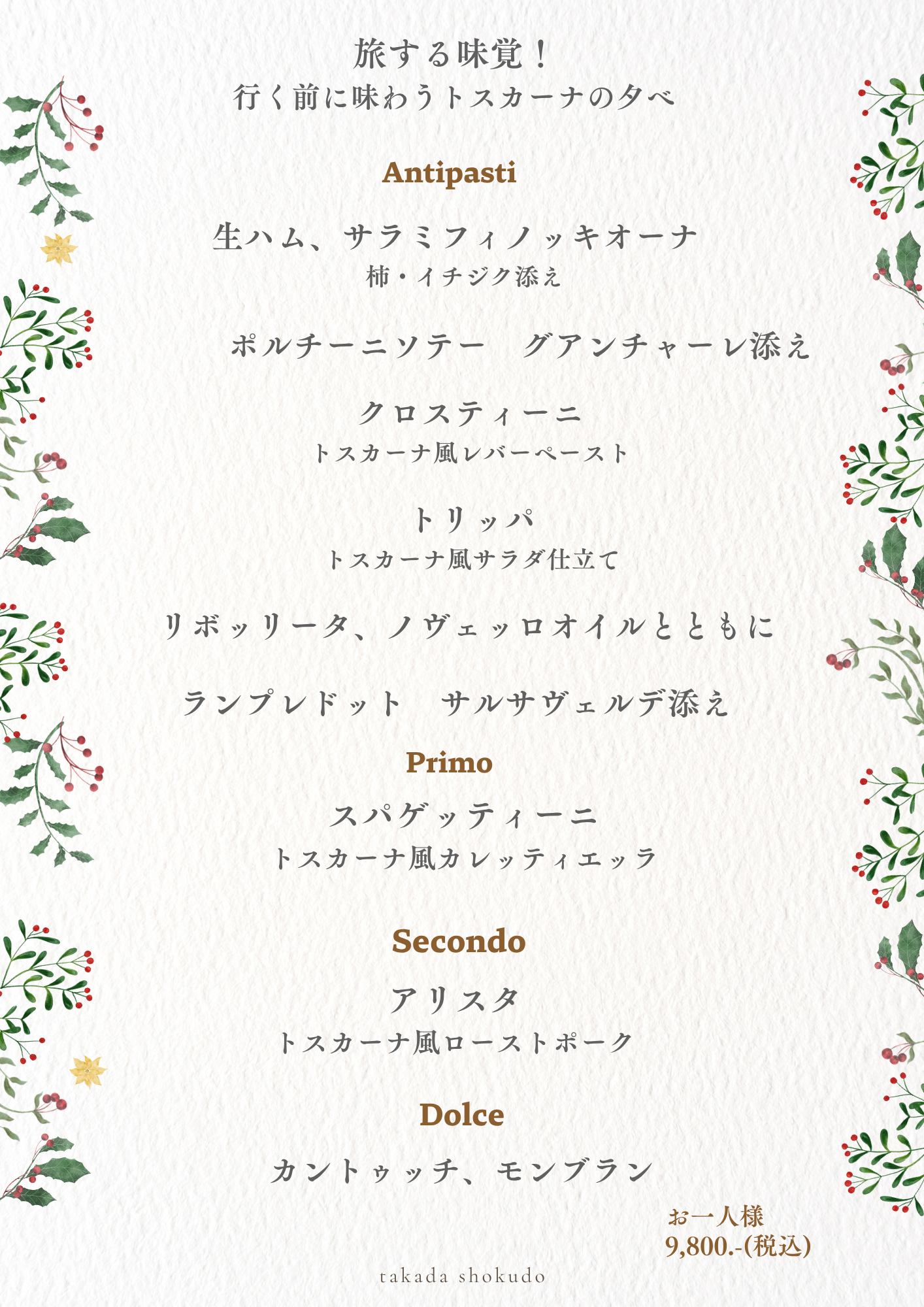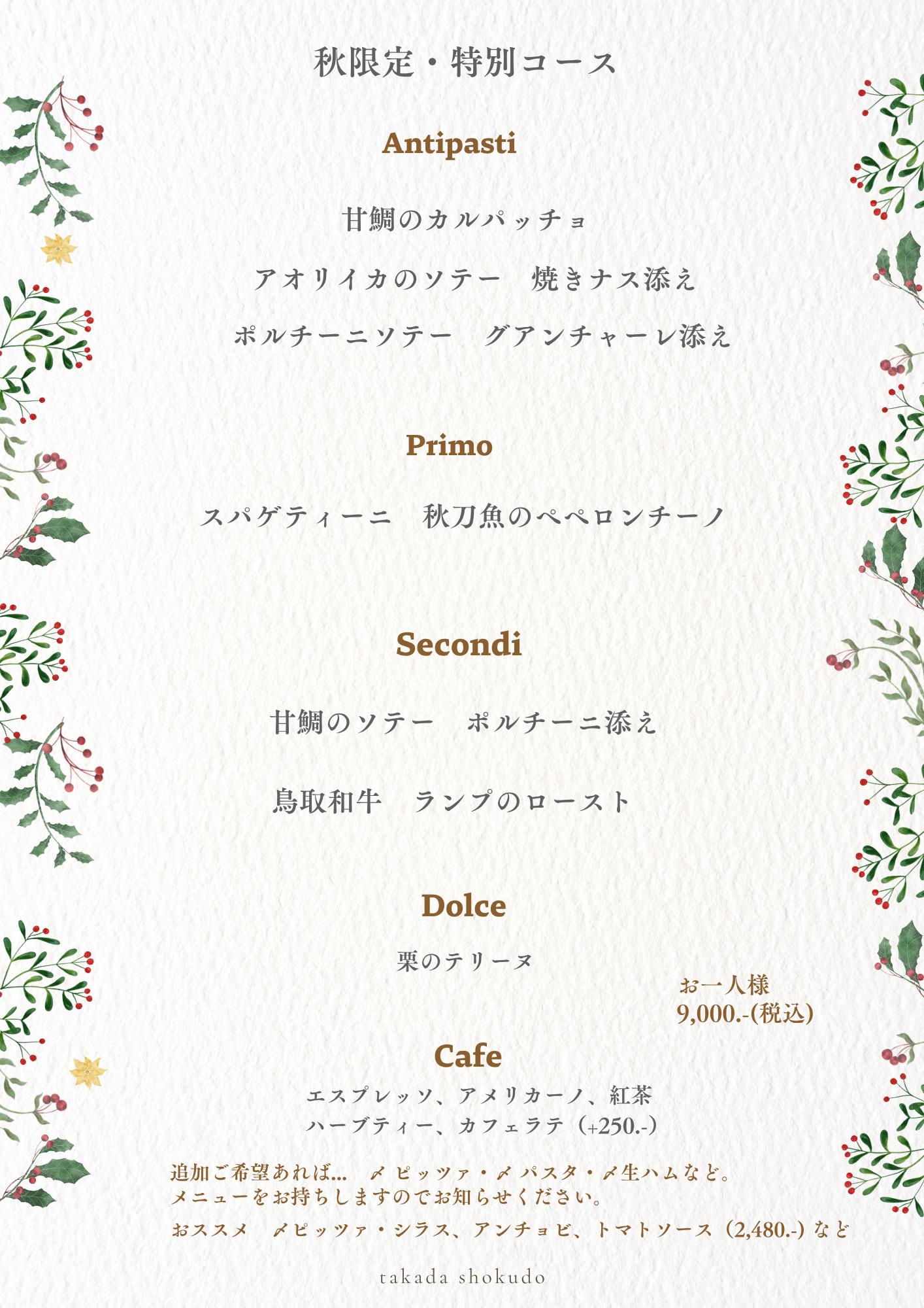 ご予約ご希望の方はメール(info@takada-shokudo.com)