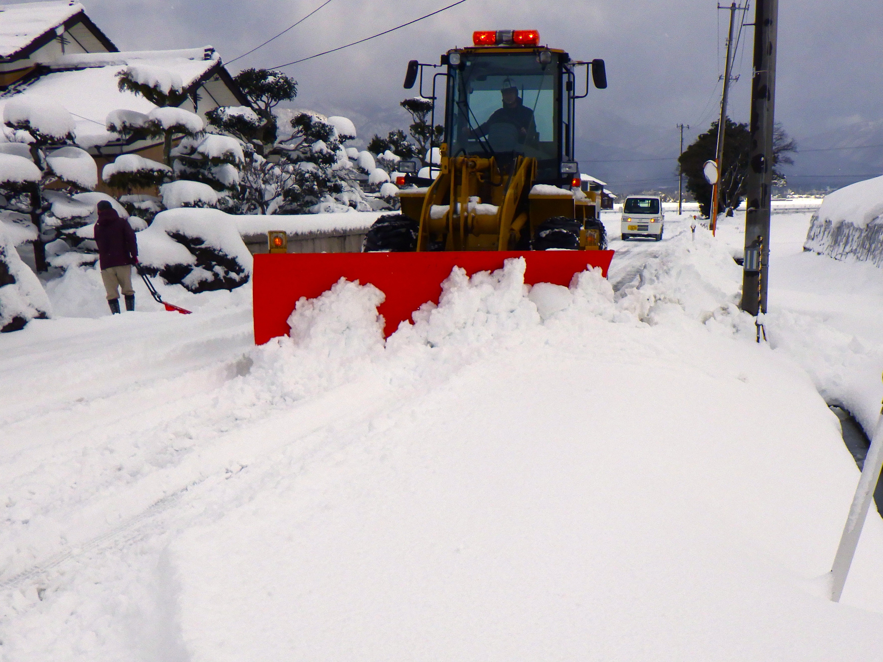 佐渡市新穂地区内の道路や駐車場の除雪作業