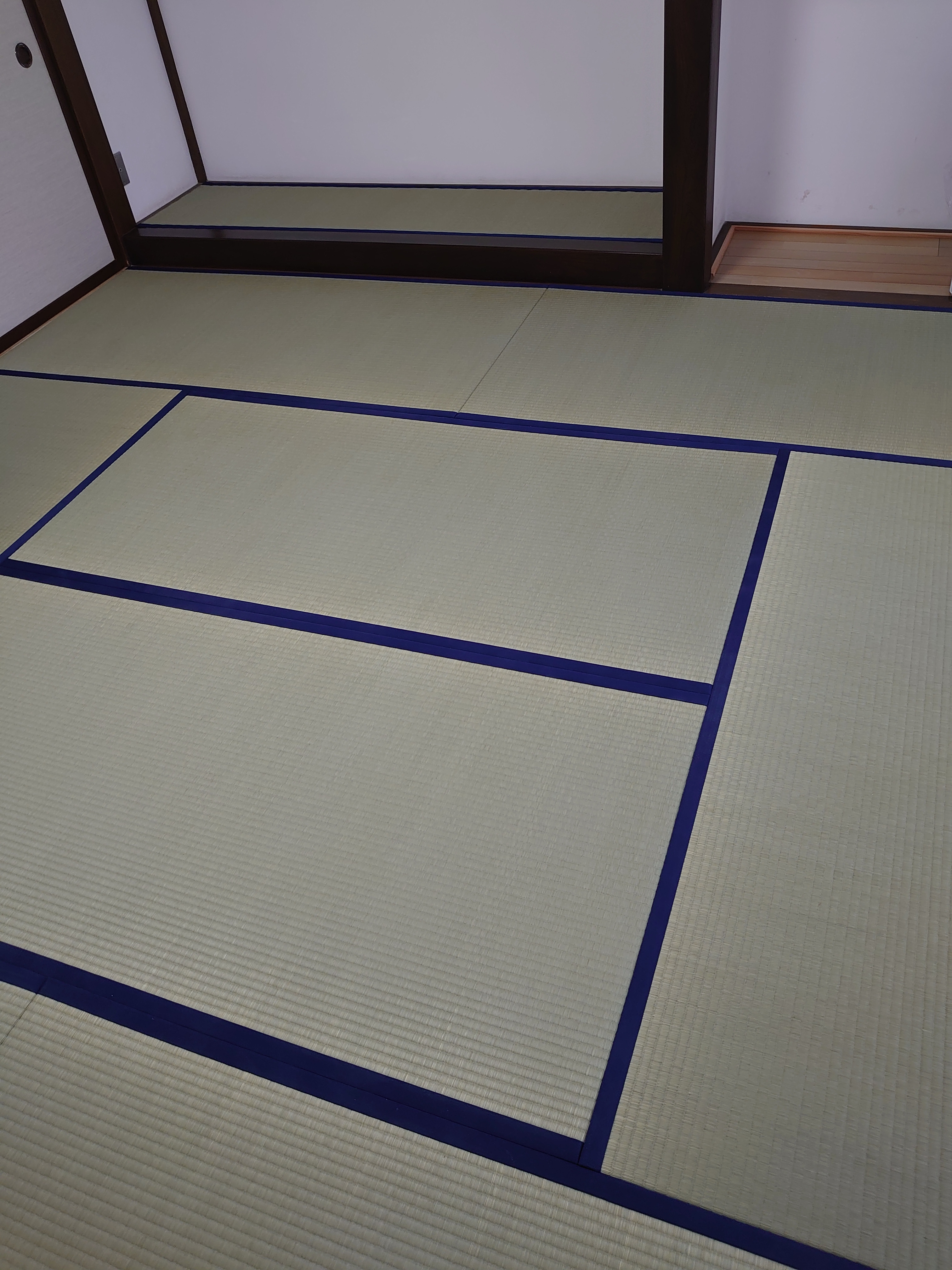 2つの畳の縁の紋がきれいに合わさるように工夫しております。