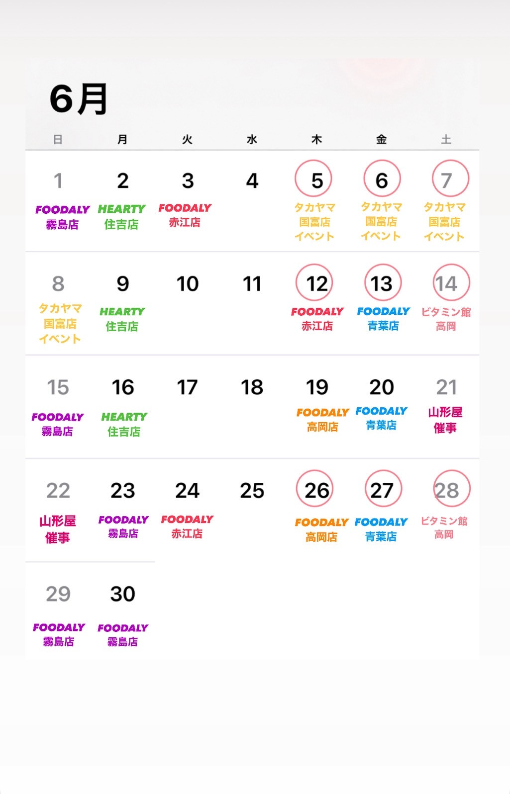 遅くなりましたが、6月の出店予定です!