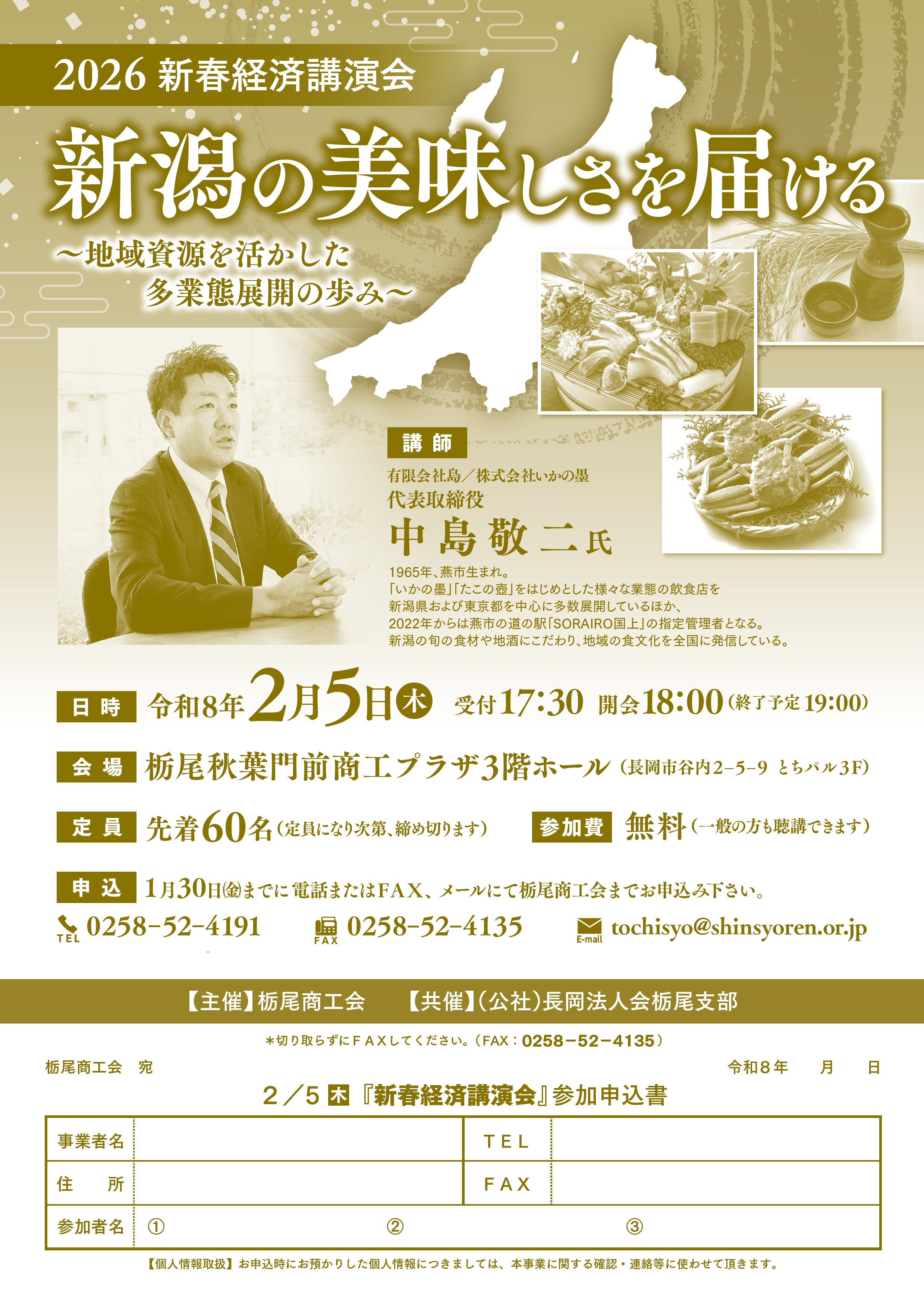 ■申込 1月27日(火)までに電話またはFAX、メールにて栃尾商工会までお申し込みください。