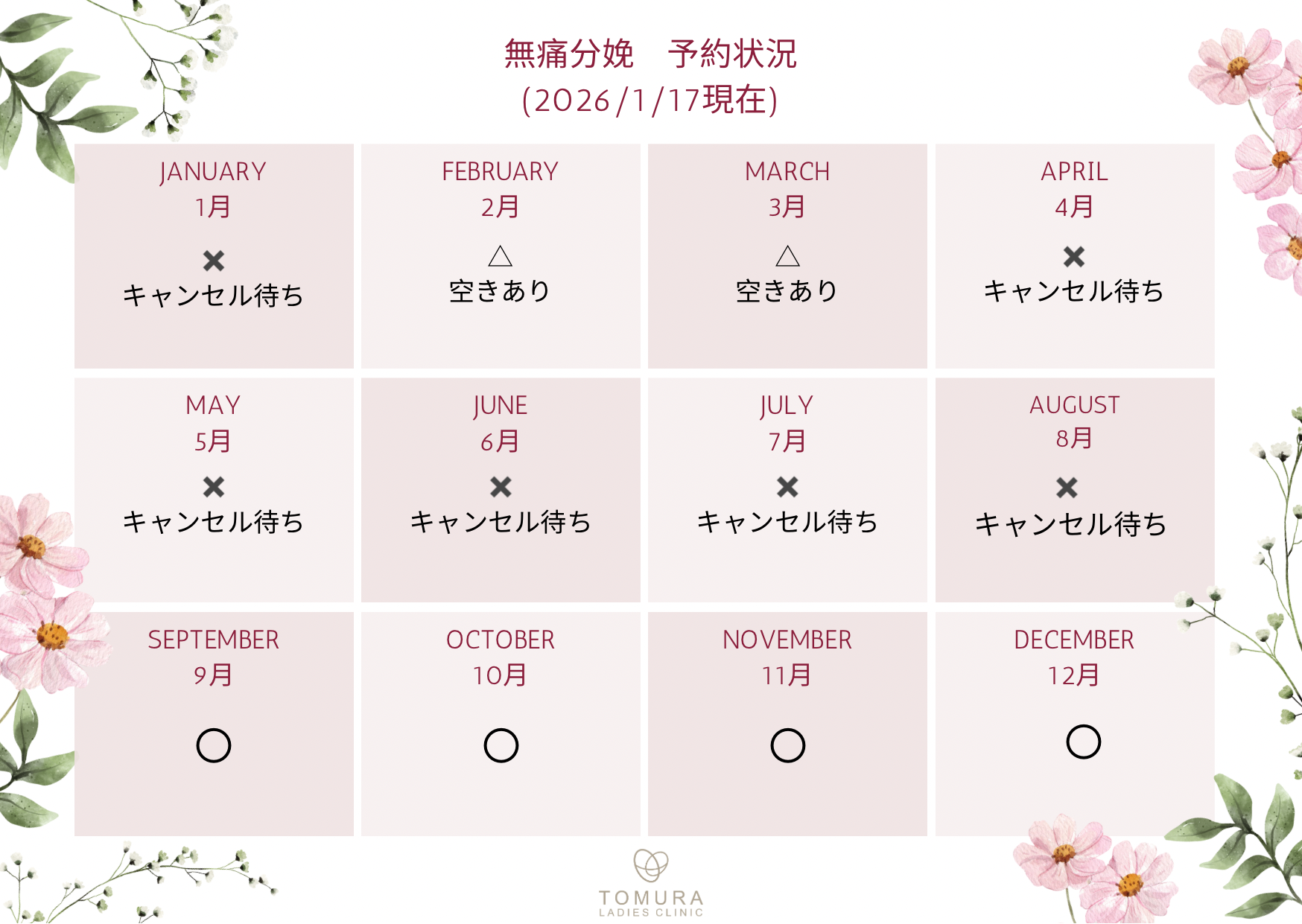 このたび、2026年5月予定日の分娩予約につきまして、大変多くの患者様よりご希望をいただいており、当院で安全にお受けできる定員数に達する見込みとなりました。