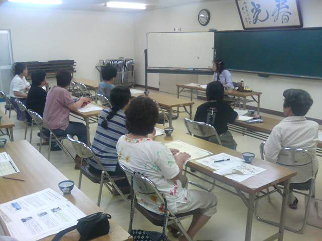 本年度、新規事業として実施されている「元気な商工会地域づくり支援事業」の一環として、八尾商工会女性部では、国際化対応観光研究事業を実施。台湾、中国、韓国、アメリカ等からの観光客に八尾町のよさを女性部の観点から案内する。6月以降、9月のおわら風の盆の時期に対応できるようにと道案内やおみせで必要な会話等についてそれぞれの先生より会話についての研修を行った。おわら風の盆の時期だけでなく通年を通して外国からの来町者に女性部としての対応を目差す。また、簡単な日常会話を取りまとめた会話集を作成し、女性部員に配布予定。(写真は8月9日実施の中国語研修:東海寿子氏)