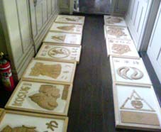 小杉商工会女性部は、「元気な商工会地域づくり支援事業」を活用し、本年度、旧小杉町出身の竹内源造の残した鏝絵に着目し、街づくりに活かせないかと活動を行っている。商工会女性部員が自らの商売用の看板をそれぞれ製作し、お店の前に展示する。鏝絵用のフレームに鉛筆で下絵を描き、壁土を盛り上げ漆喰を塗り彩色を予定している。今後は鏝絵看板を商店街に設置し、商店街のマップを作成しPRを行う。