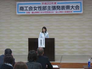 平成20年6月20日(月)に富山県中小企業研修センターにおいて、商工会女性部主張発表大会を開催した。4ブロックの代表が(1)女性部活動に参加して (2)女性部活動と地域振興・まちづくり のテーマから1つを選択し、10分間の時間を基準に発表を行った。