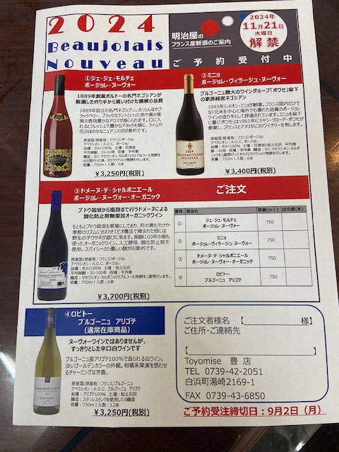 豊店のお取り扱いボージョレ・ヌーヴォーワイン