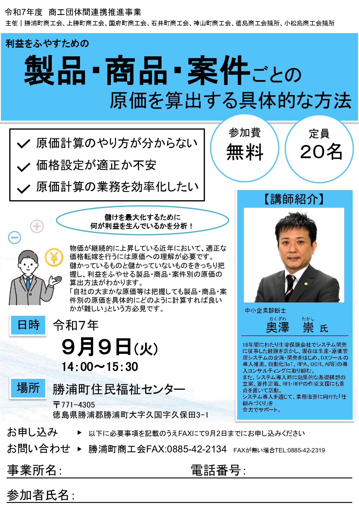 「利益をふやすための 製品・商品・案件ごとの 原価を算出する具体的な方法」 講習会開催