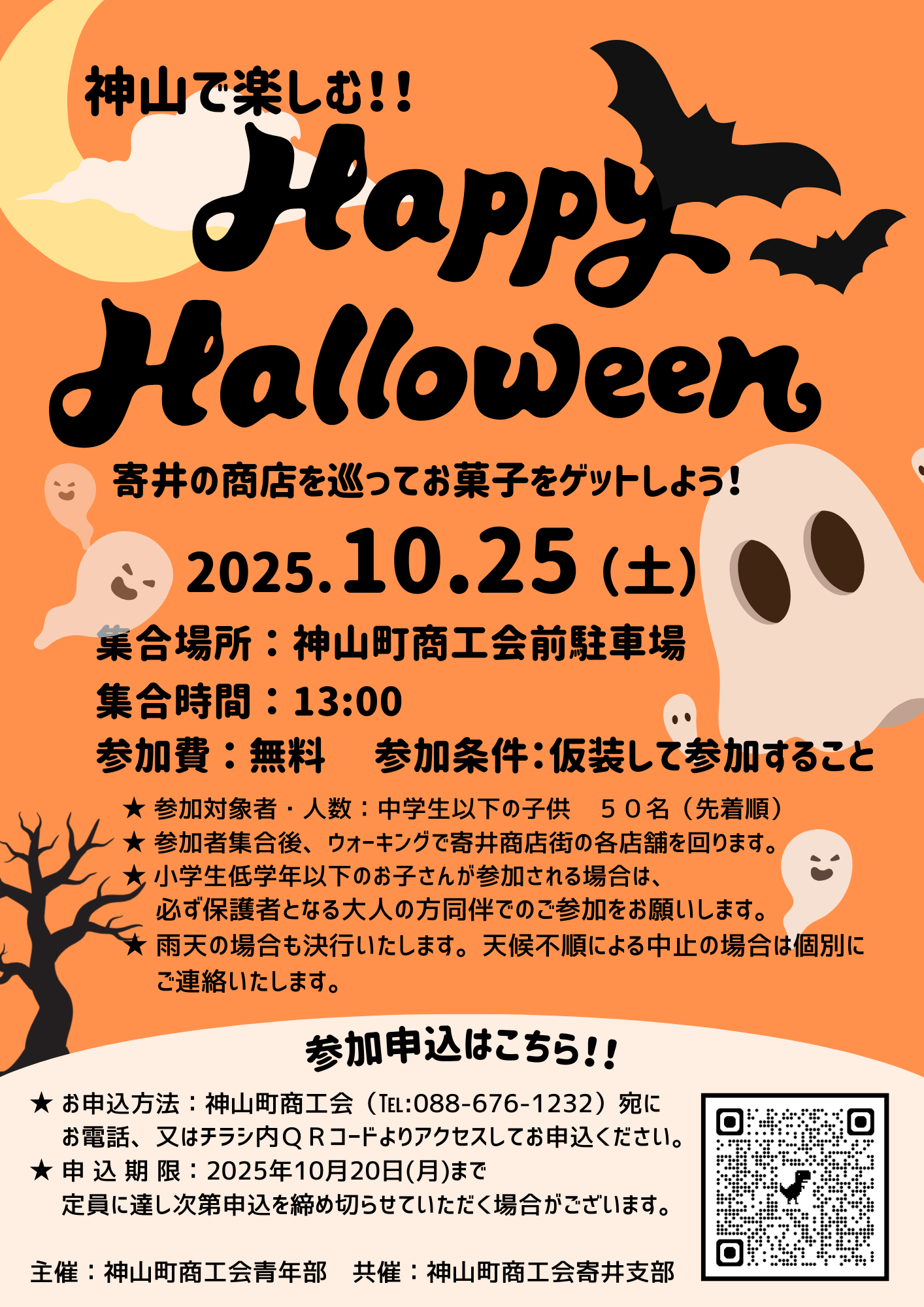 神山町商工会青年部と商工会寄井支部のタッグでお送りする「神山町ハッピーハロウィン2025」を今年も下記日程にて実施いたします。