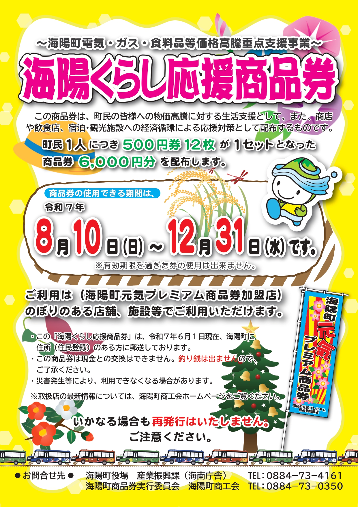 お問い合わせは海陽町商品券実行委員会 海陽町商工会 TEL0884-73-0350までご連絡下さい。