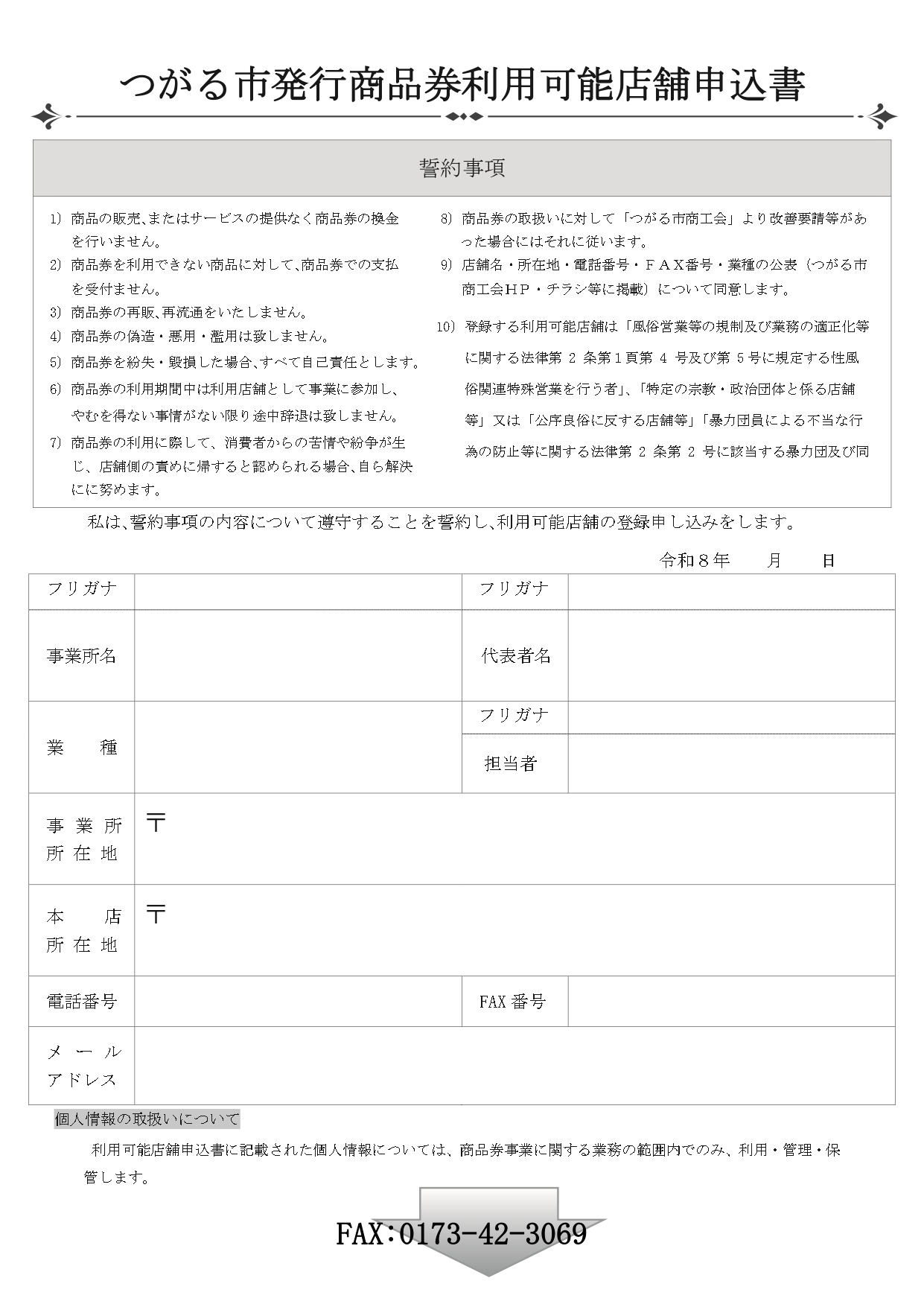 ○申込方法:商品券利用可能店舗申込書に必要事項をご記入のうえ、つがる市役