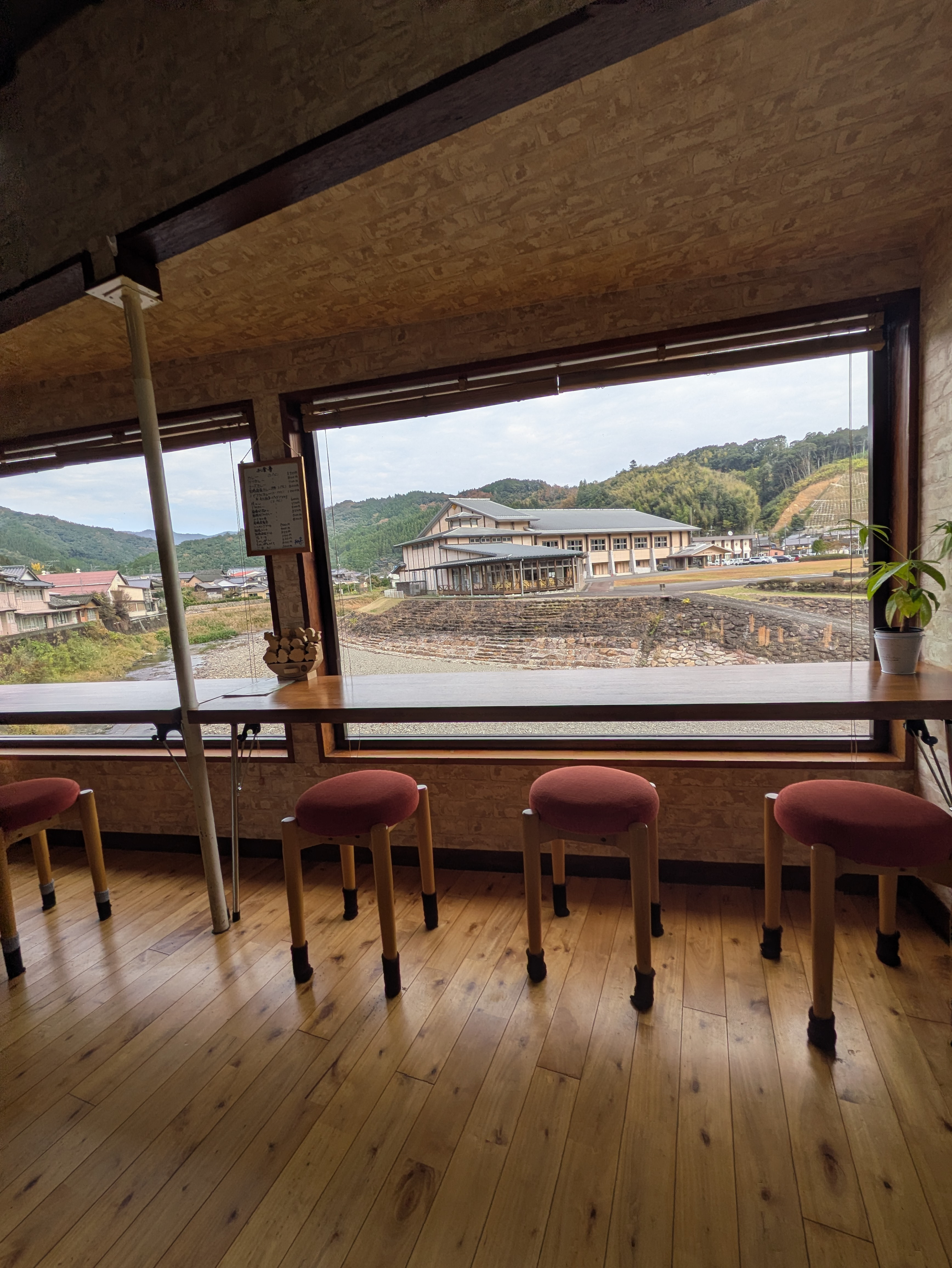 ドアを開けるとカウンター席、奥には大きな窓から五十鈴川を見下ろすテーブル席があって、とても明るく美しい景観も楽しめます。