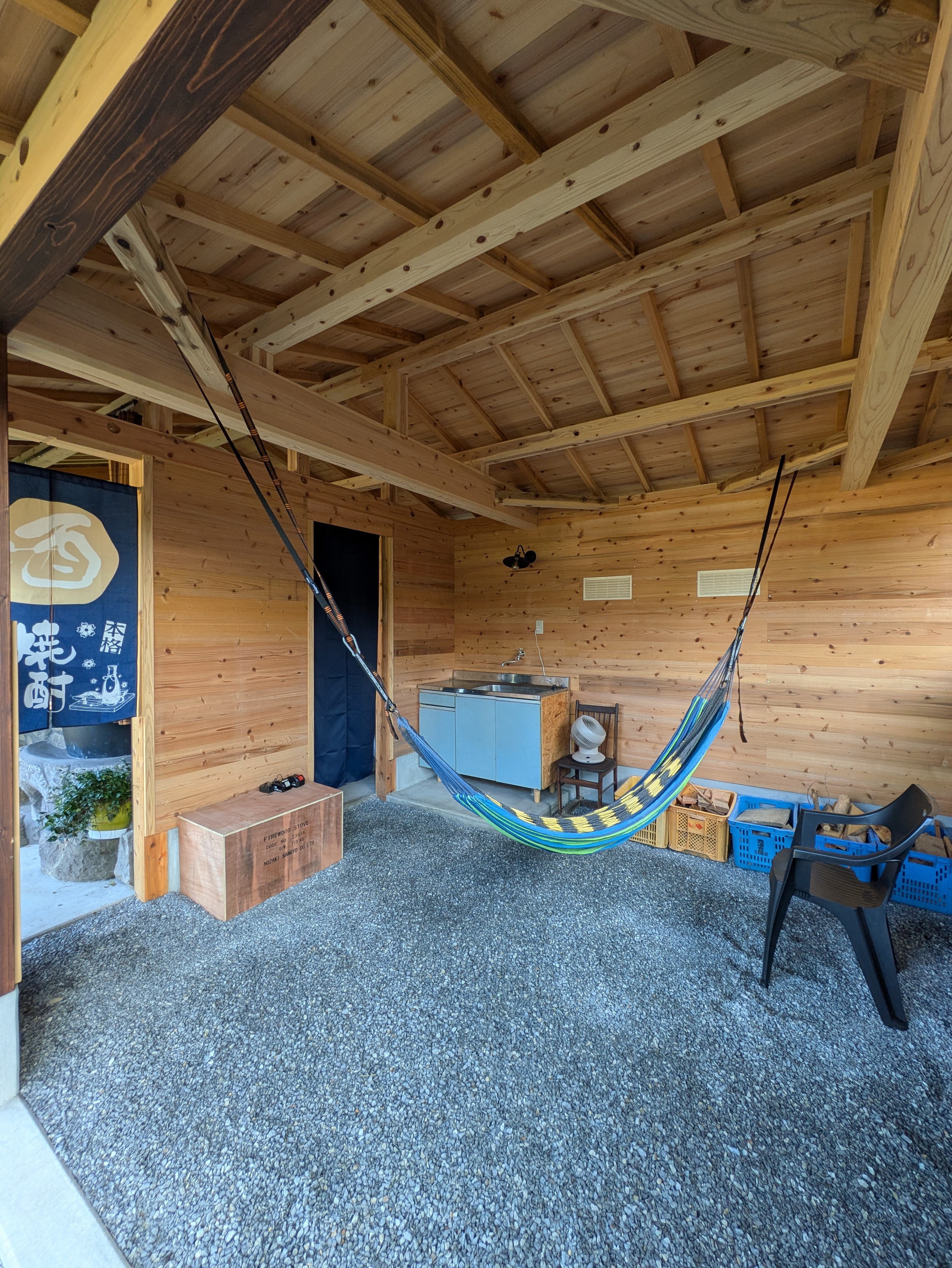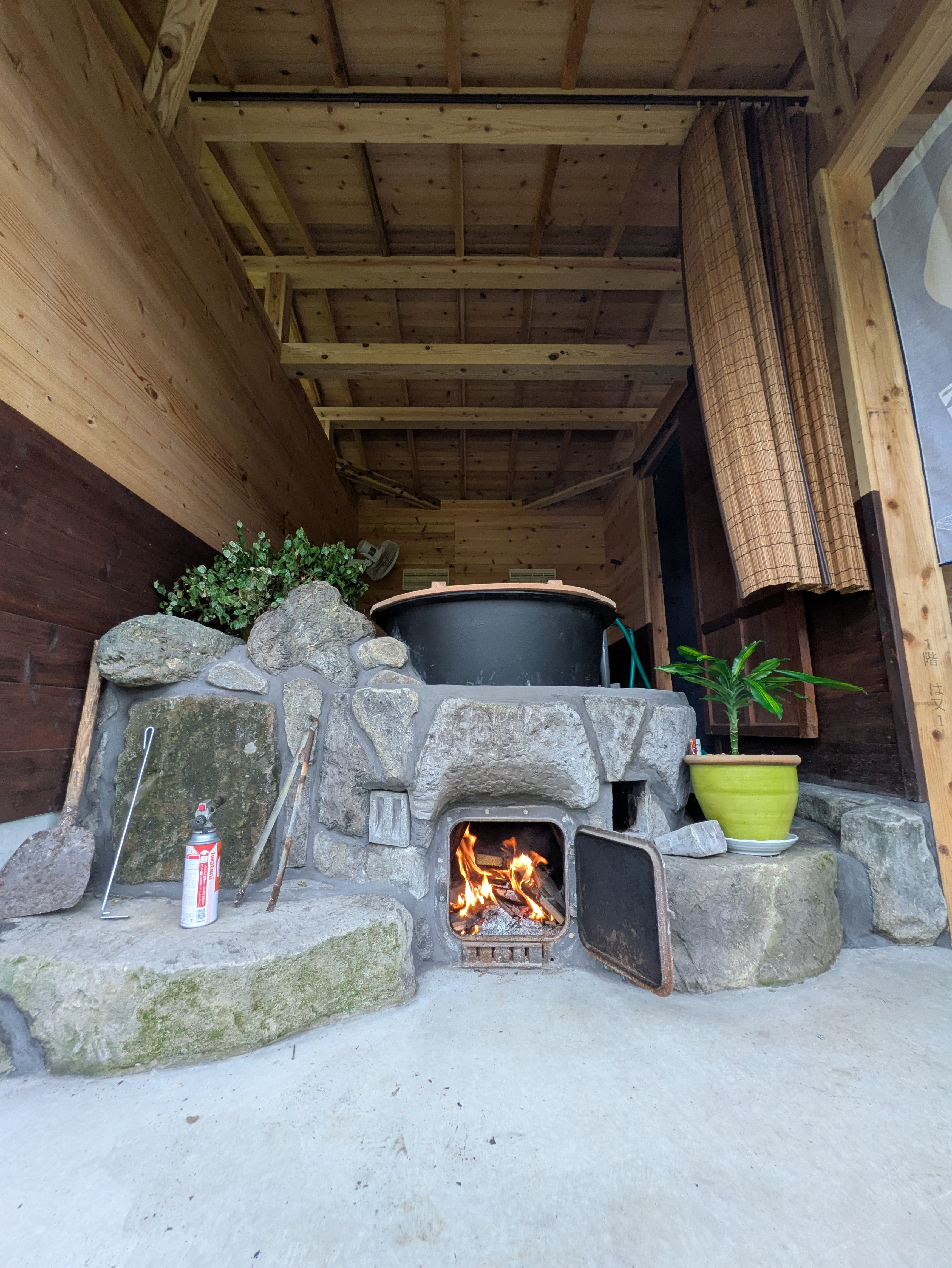 うなま別邸の敷地内にある木造の小屋には、BBQスペースと薪で沸かす五右衛門風呂があります。